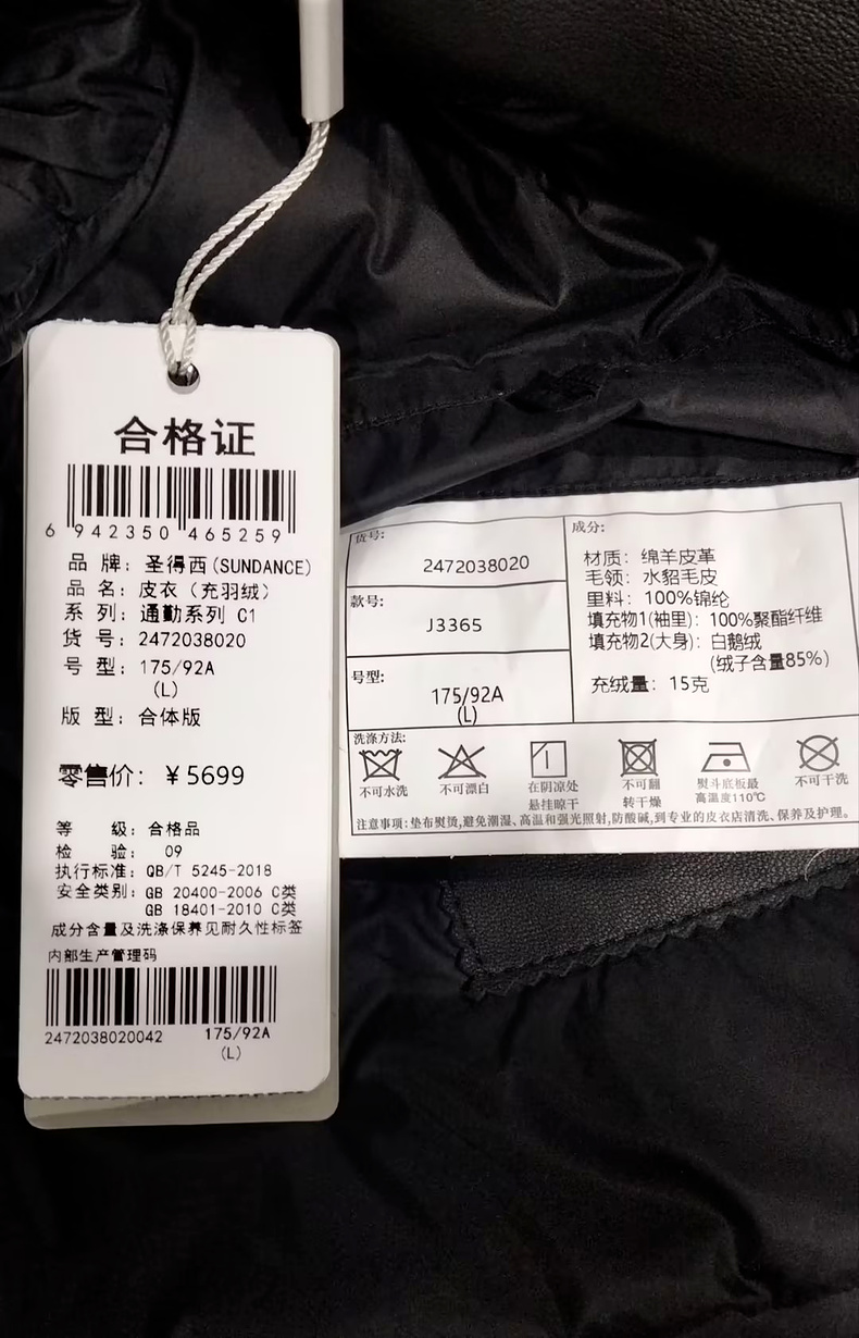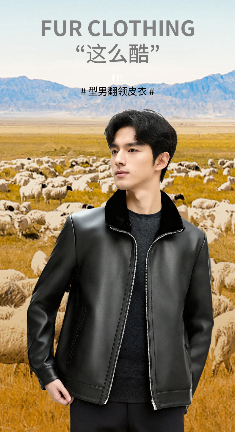 【门店同款&鸭绒】圣得西2025年冬季男士羽绒绵羊皮革真皮皮衣