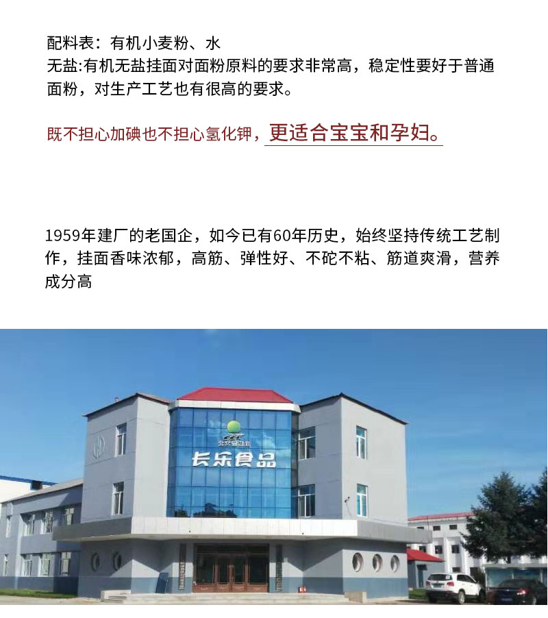 黑龙江垦区北大荒 长乐 有机小麦无盐加工 圆面 挂面250g*6袋