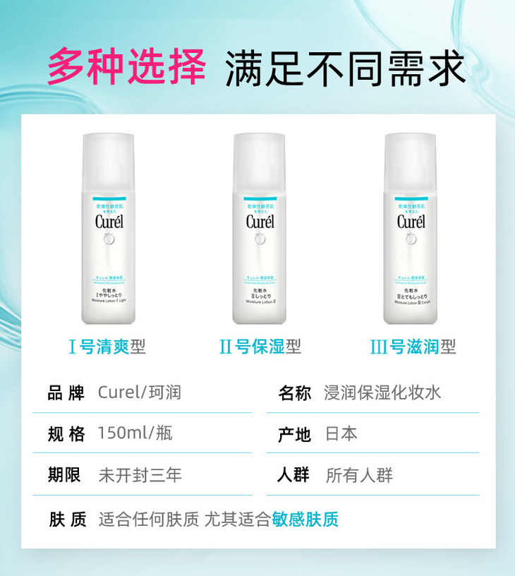 日本 Curel珂润 保湿爽肤精华水/乳 150ml/120ml