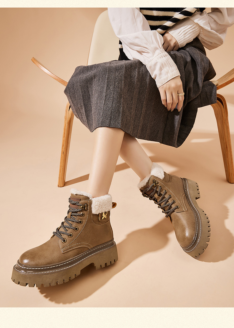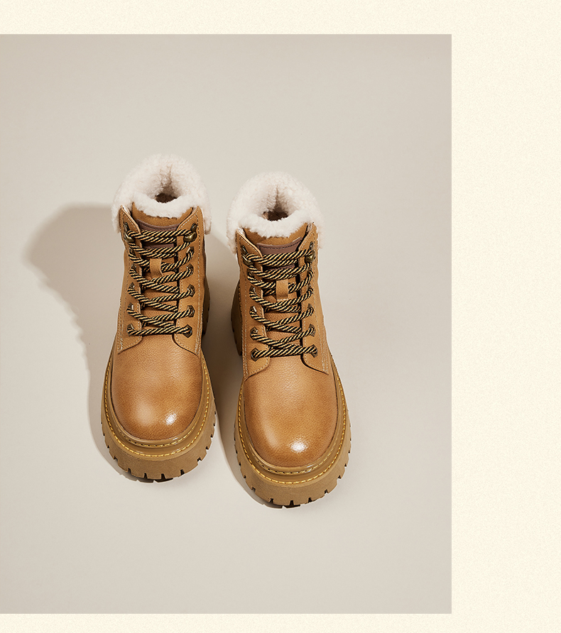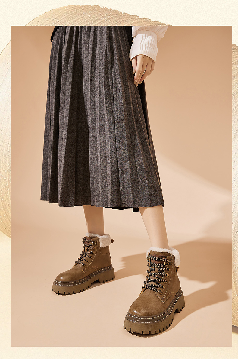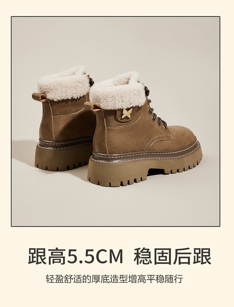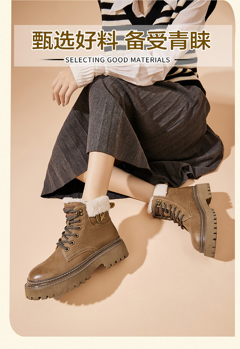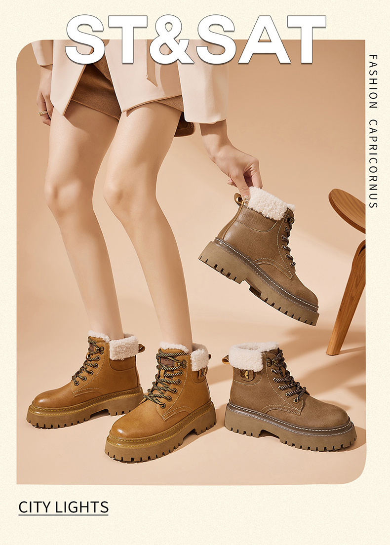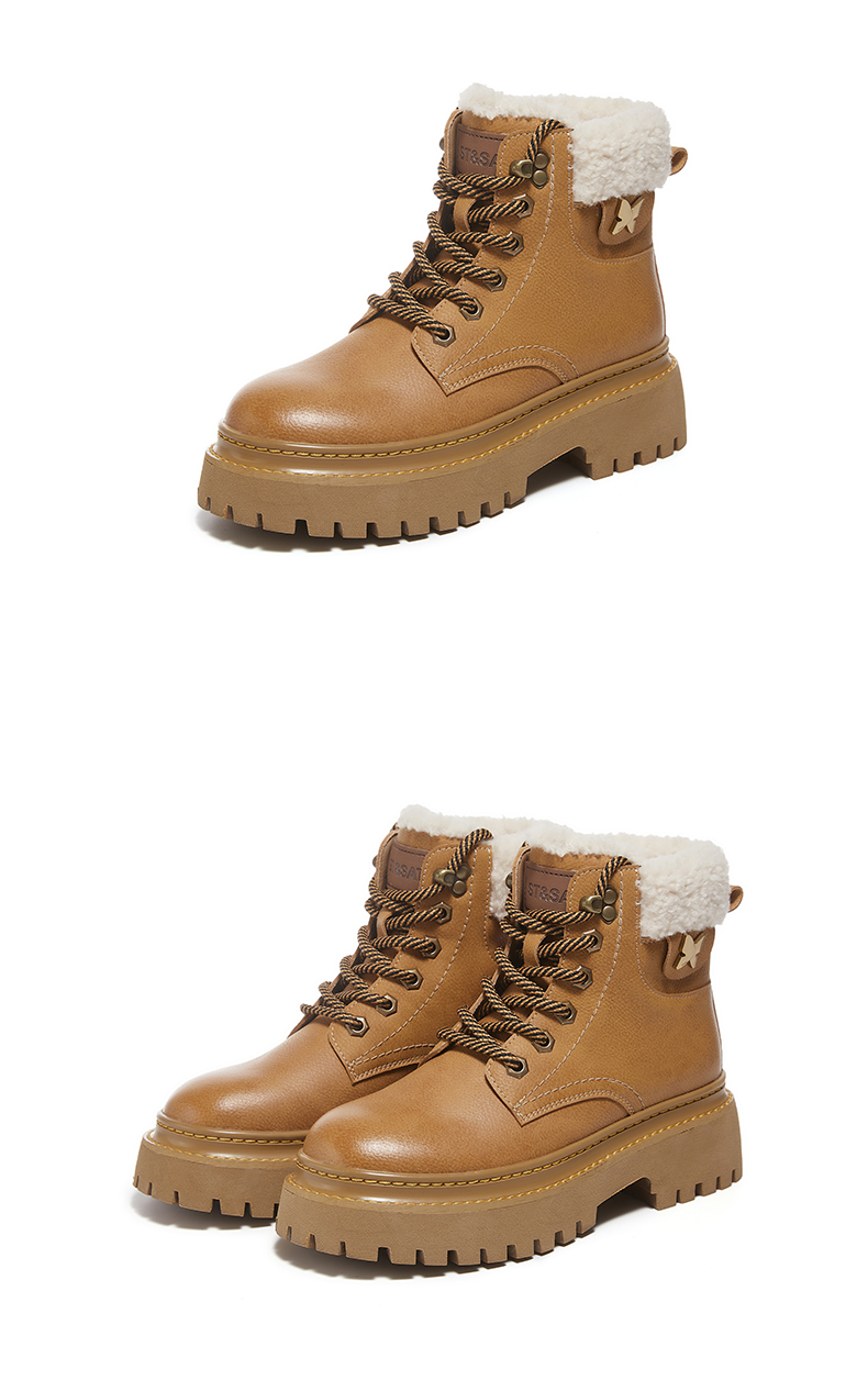 星期六经典复古保暖毛领厚底工装鞋SS341181EW