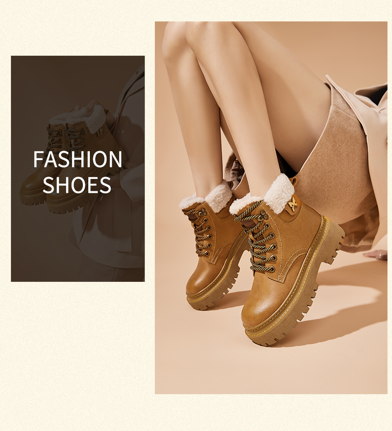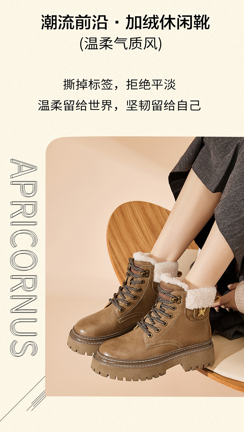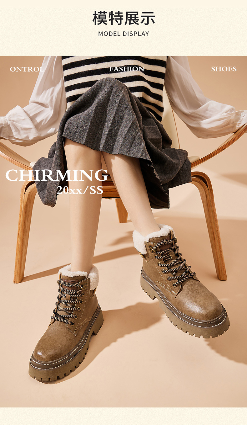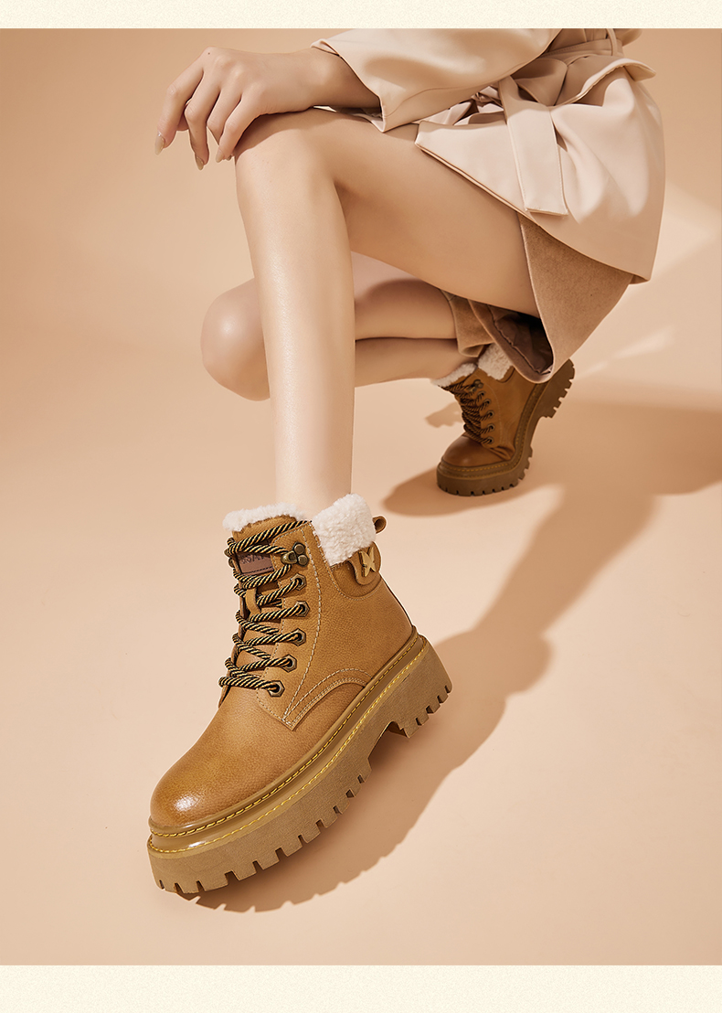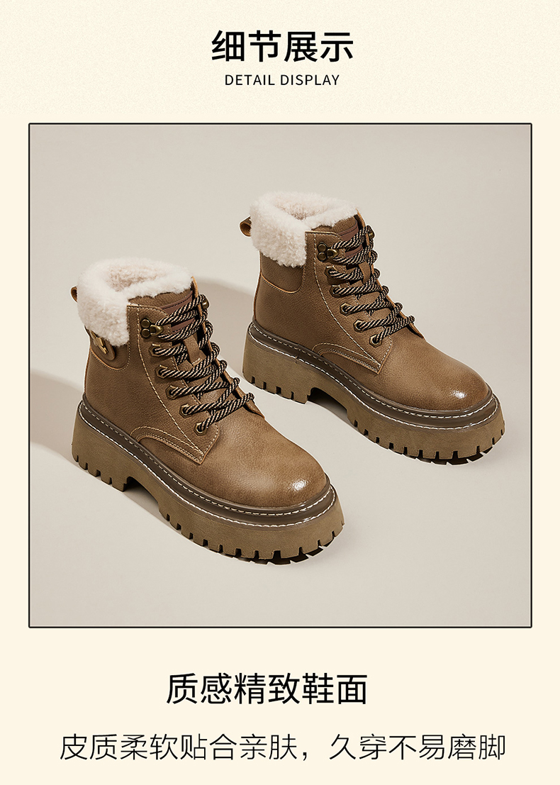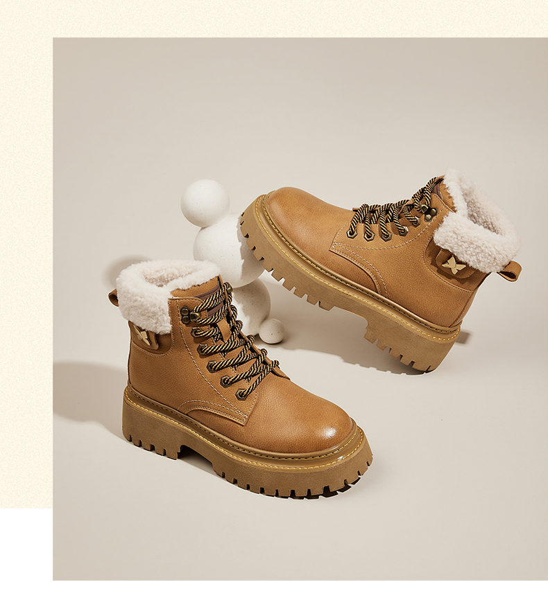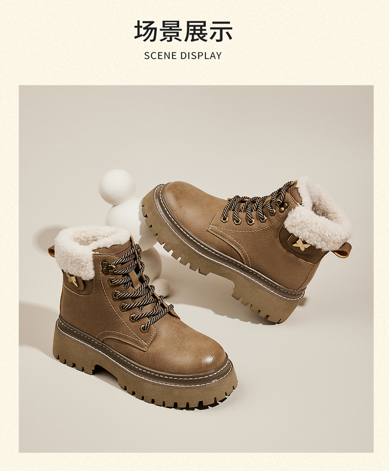 星期六经典复古保暖毛领厚底工装鞋SS341181EW
