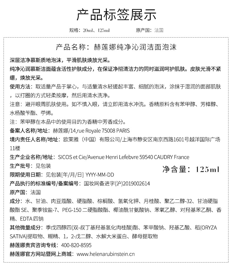 HR 赫莲娜 纯净沁润洁面泡沫 (125ml)