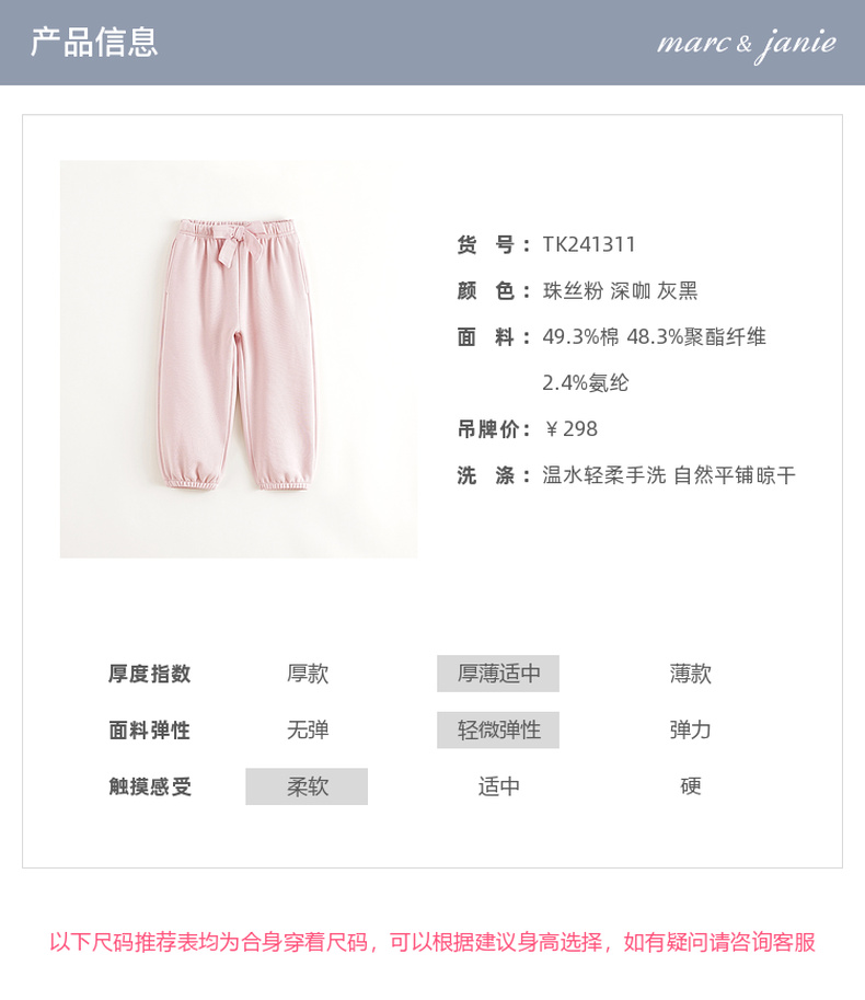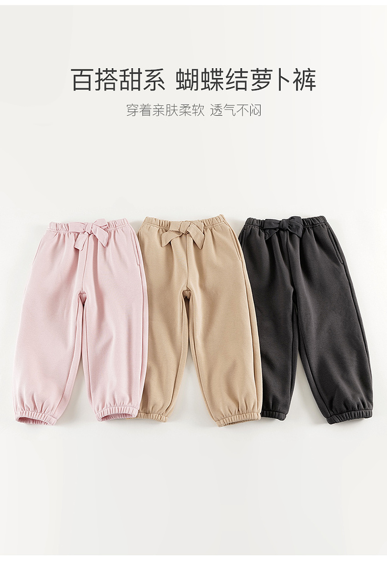 马克珍妮女童俏皮可爱蝴蝶结休闲裤2024年秋装新款241311