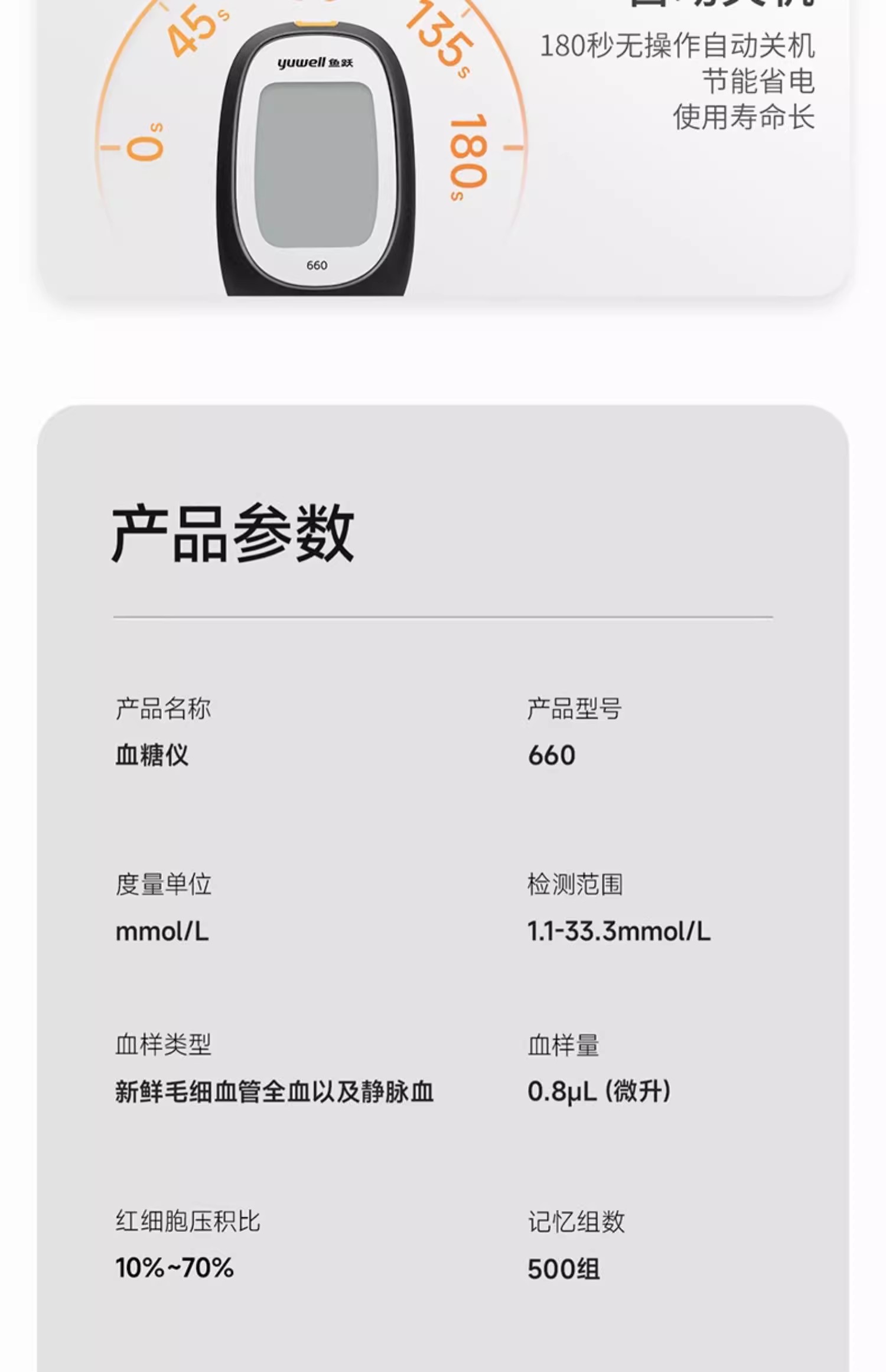 鱼跃660型血糖仪套装 机器+多规格试纸