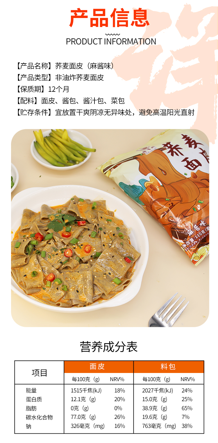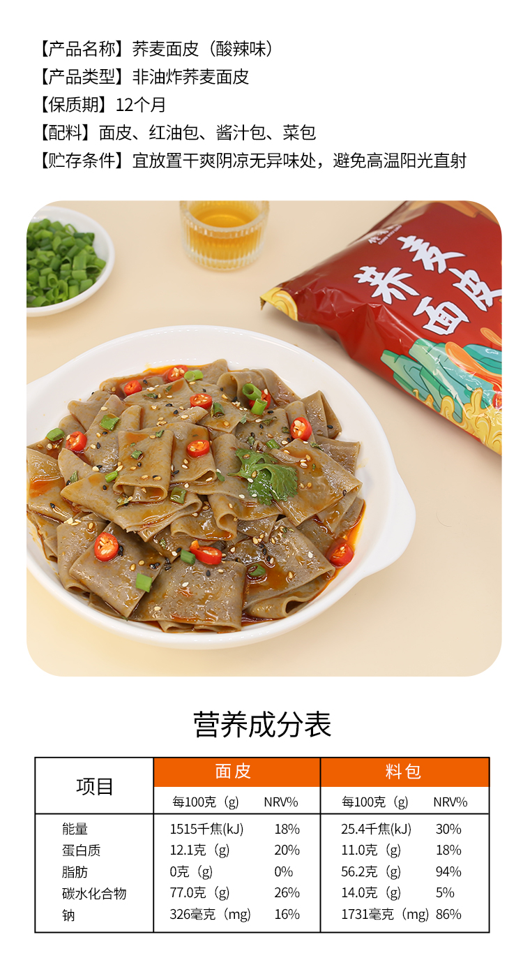 荞麦面皮免煮非油炸面皮速食干拌自带料包管理期宿舍宵夜高饱腹