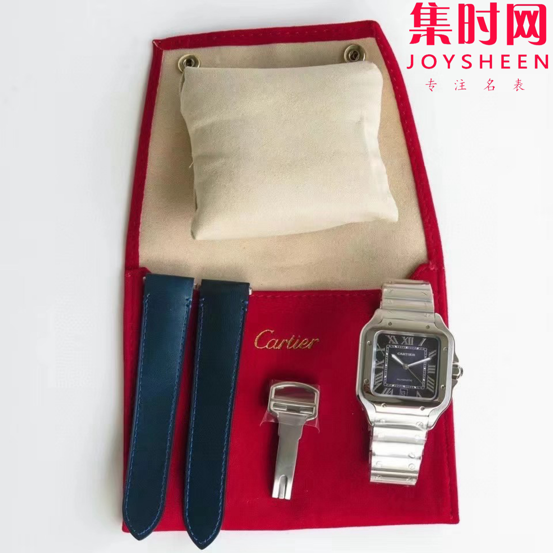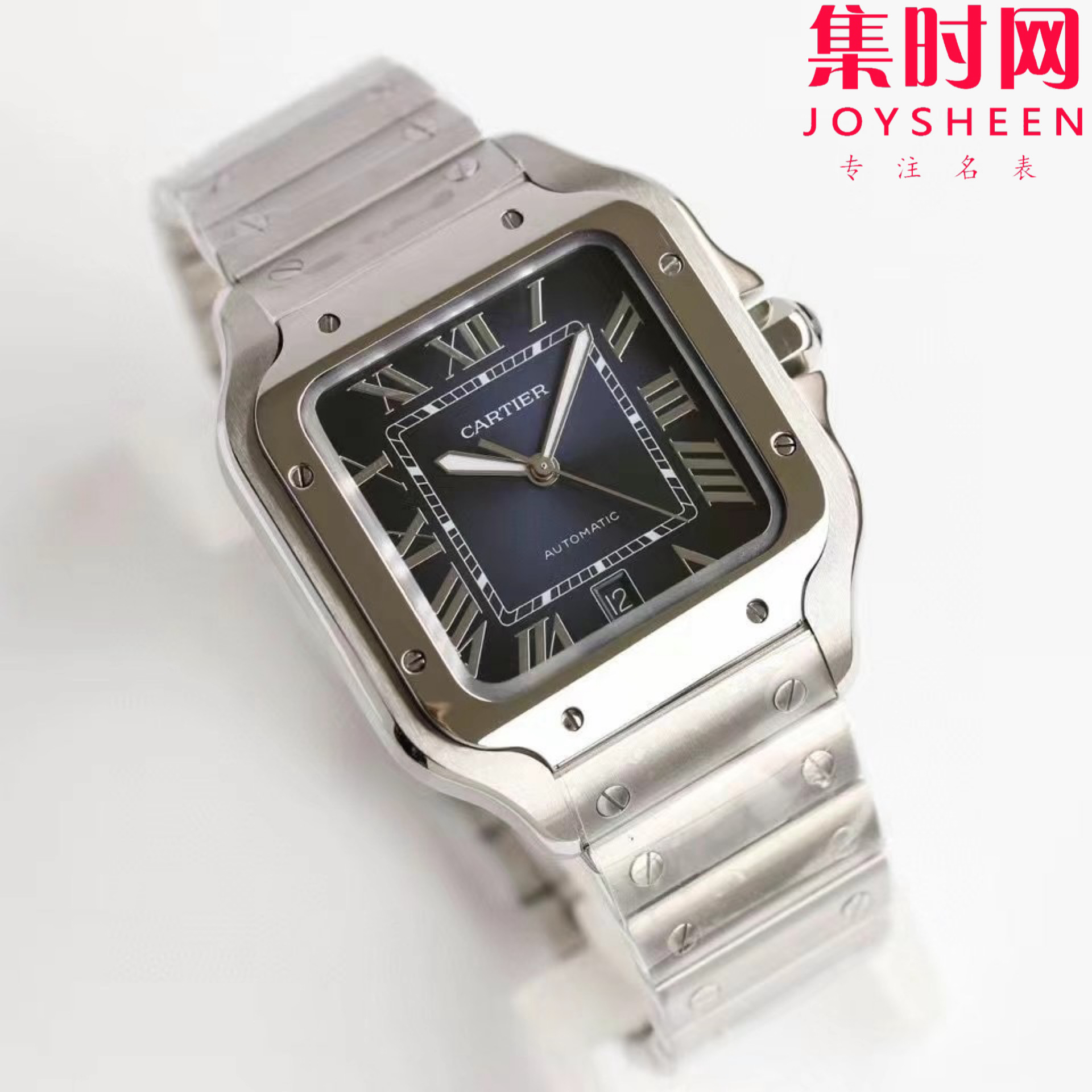 GF卡地亚山度士系列 山度士大号 钢带款 蓝色盘方形男士腕表 绝对是绕不开的经典 表径39.8mm