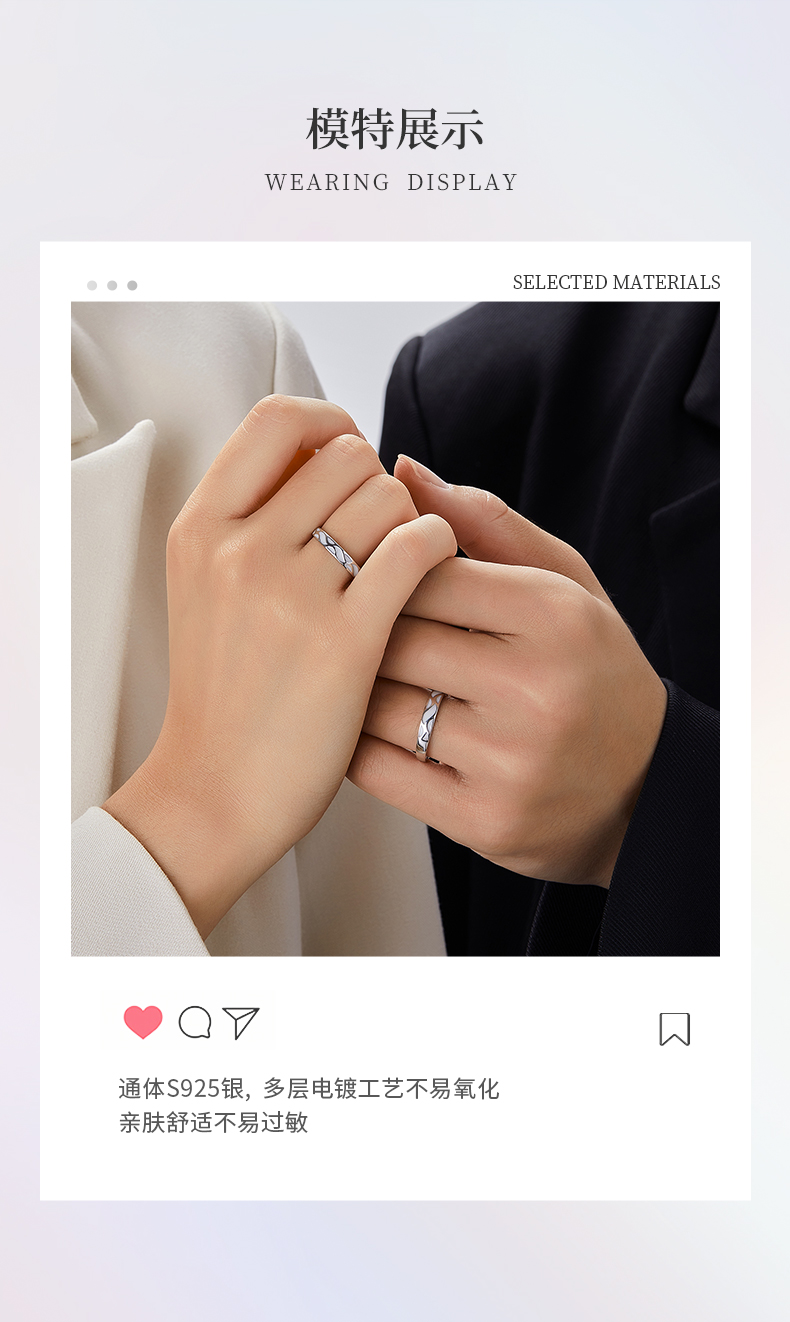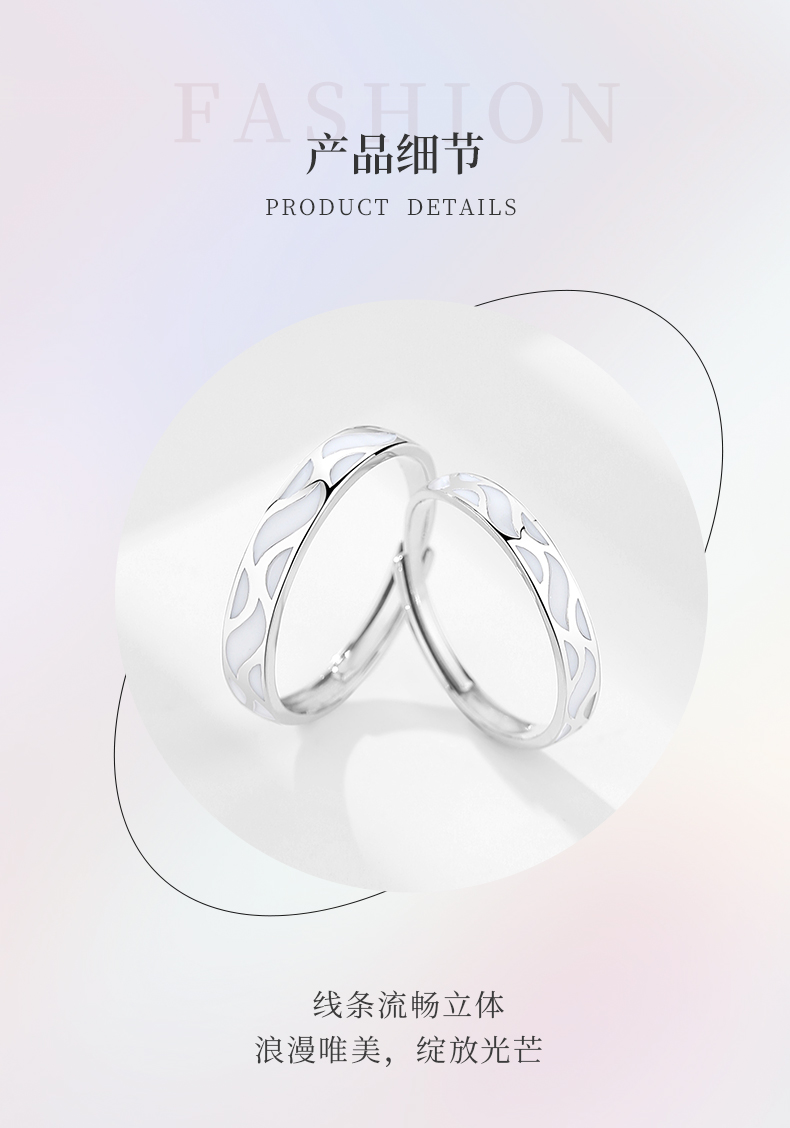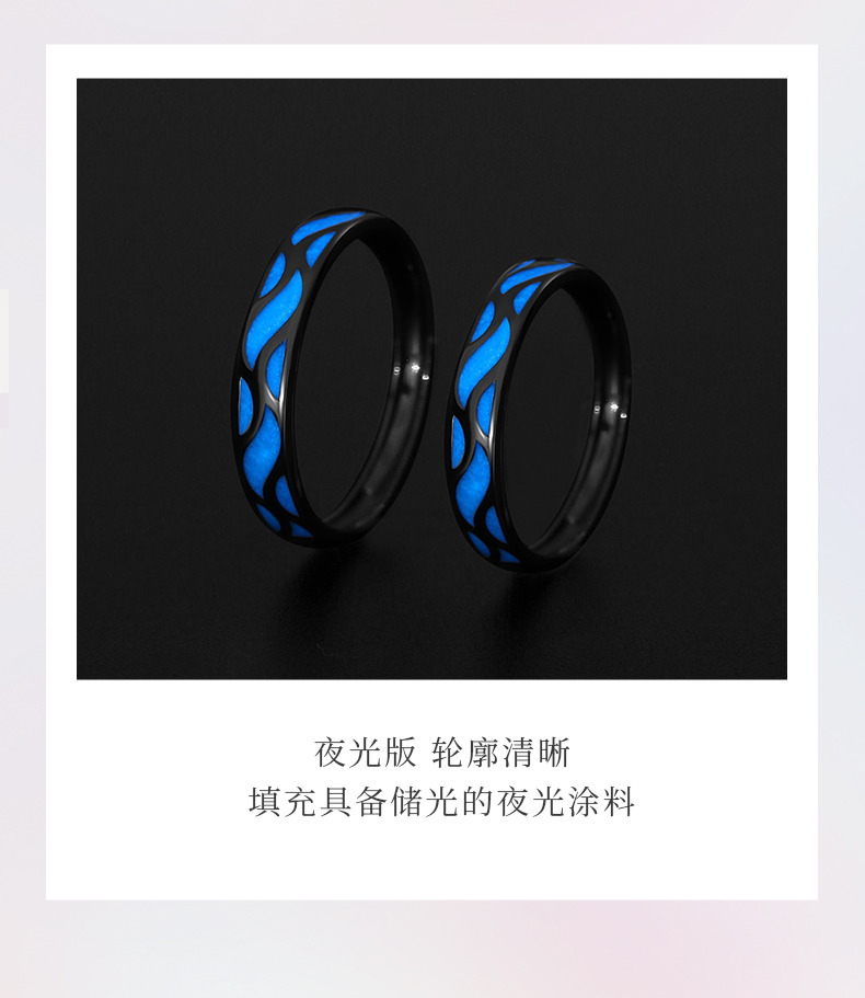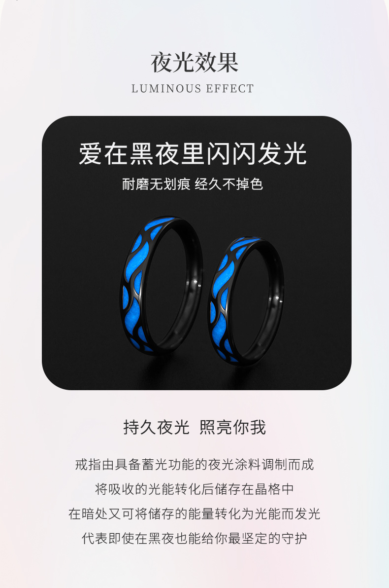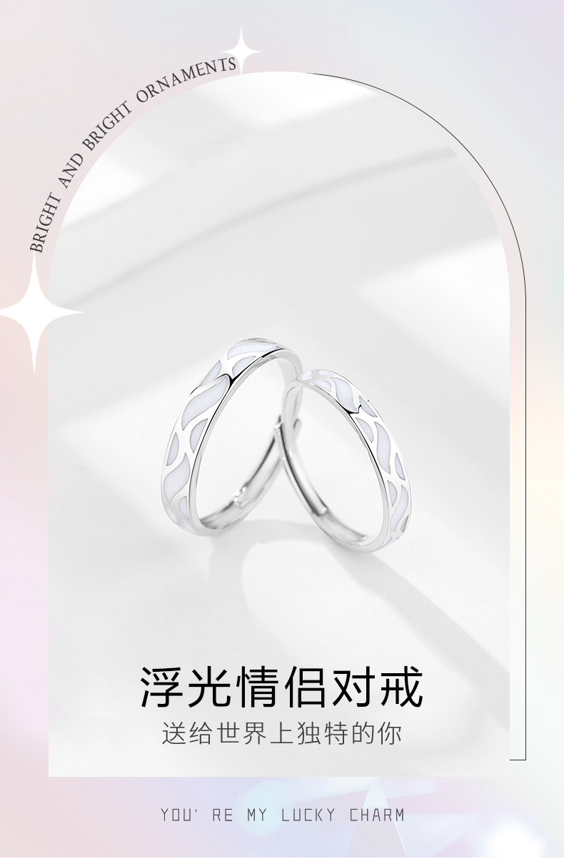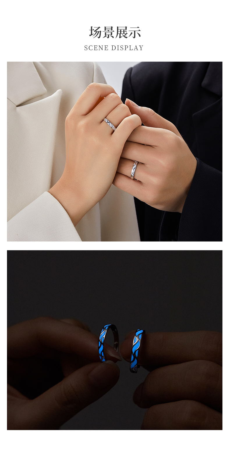 卡蒂罗/KADER 夜光效果 浮光情侣对戒 简约几何线条设计开口可调节发光银饰一对 浪漫情人节为爱闪耀恋爱频率配饰
