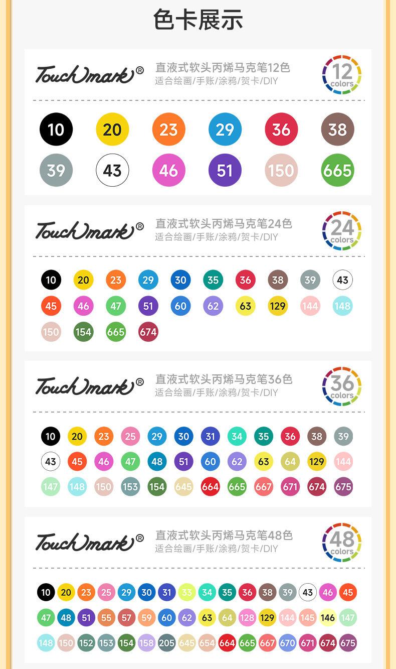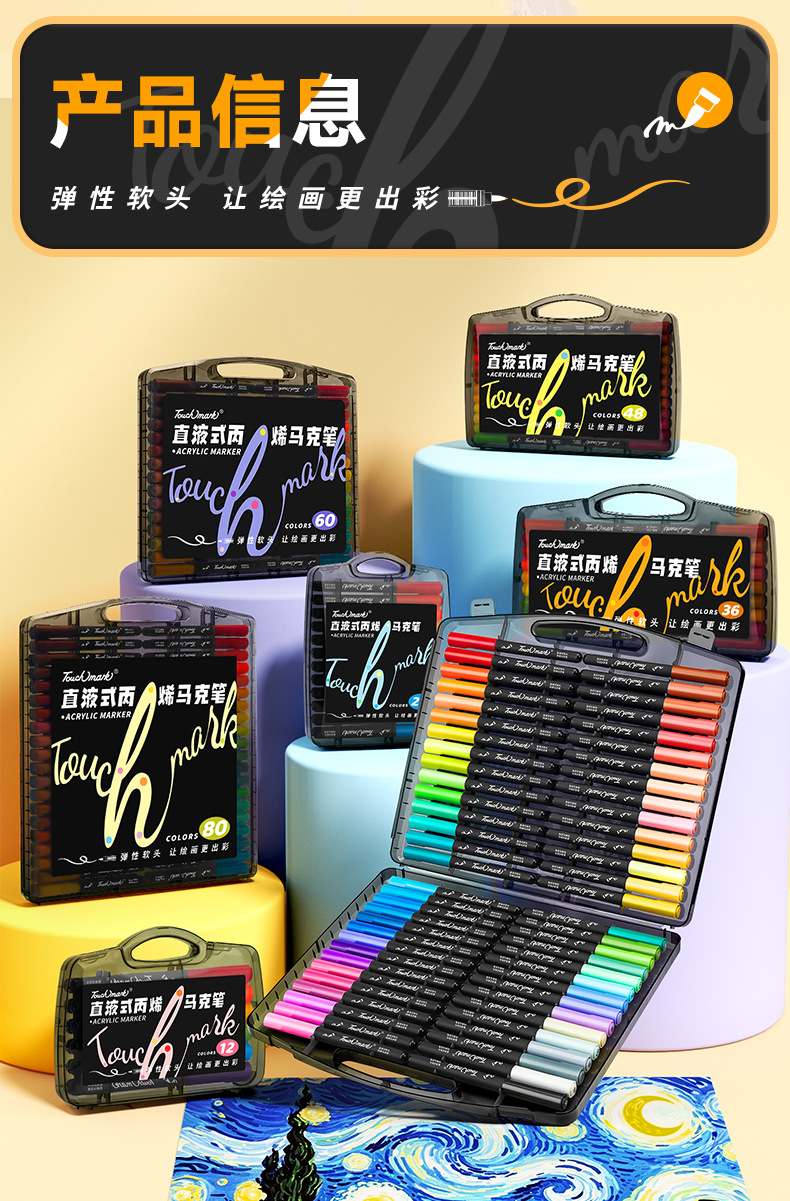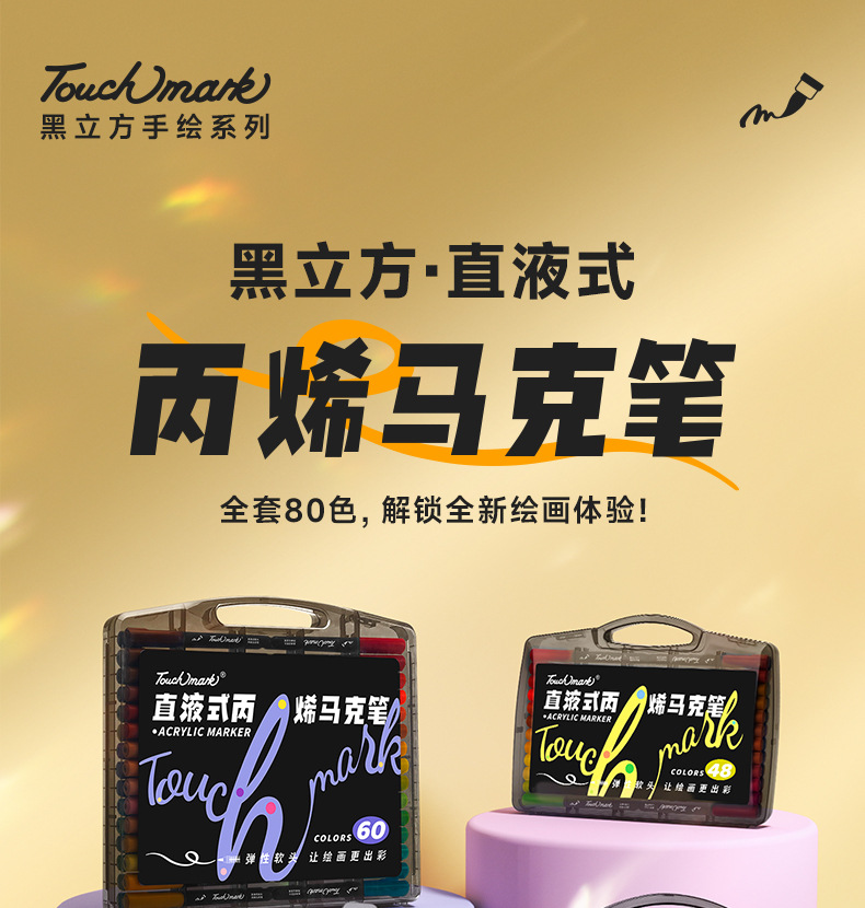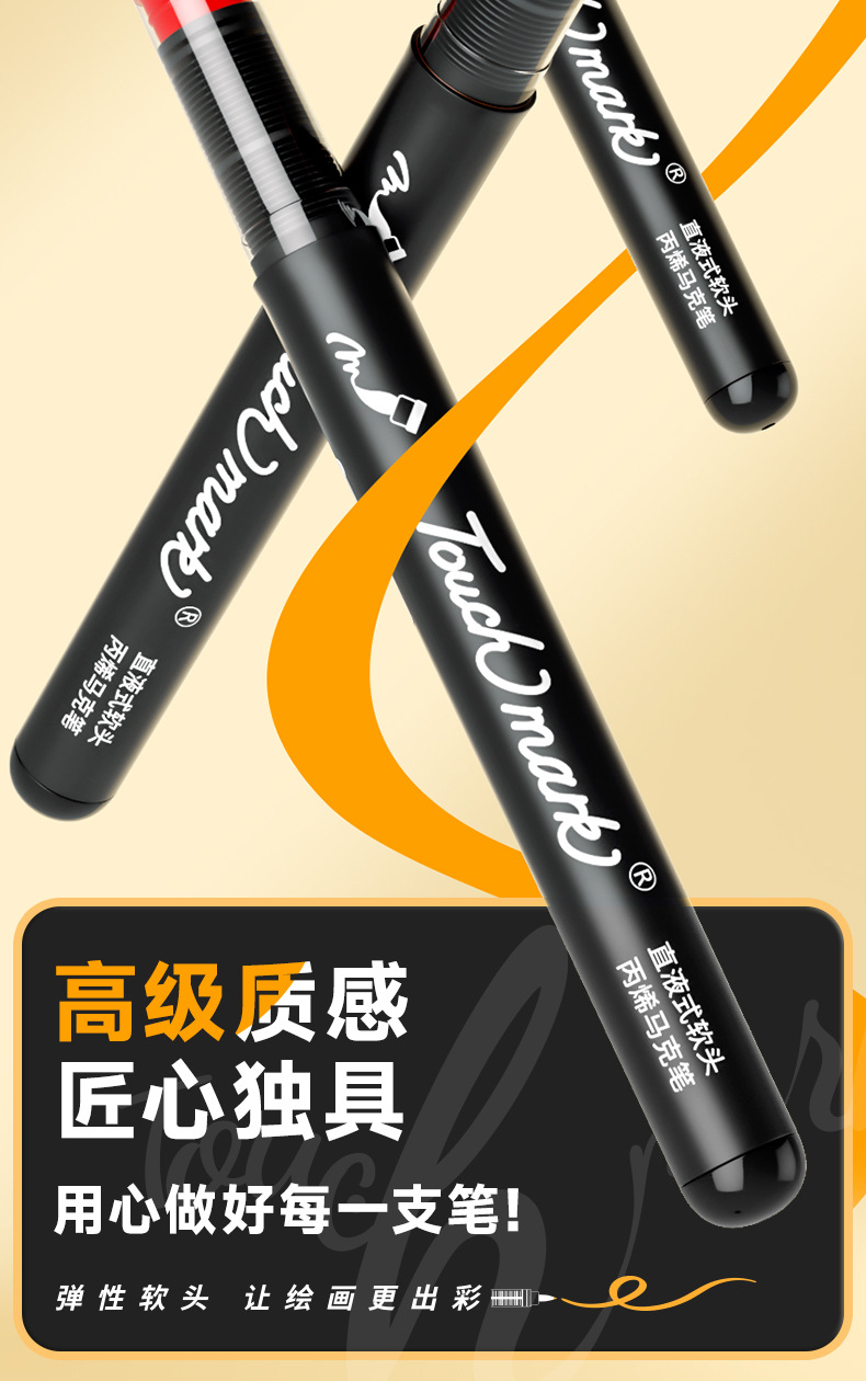 【1支抵普通笔3支!丙烯马克笔】Touchmark专业级直液式丙烯马克笔 解锁绘画体验 丝滑软头不透色可叠色 0酒精更安全