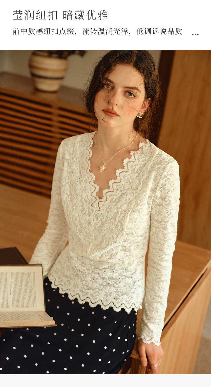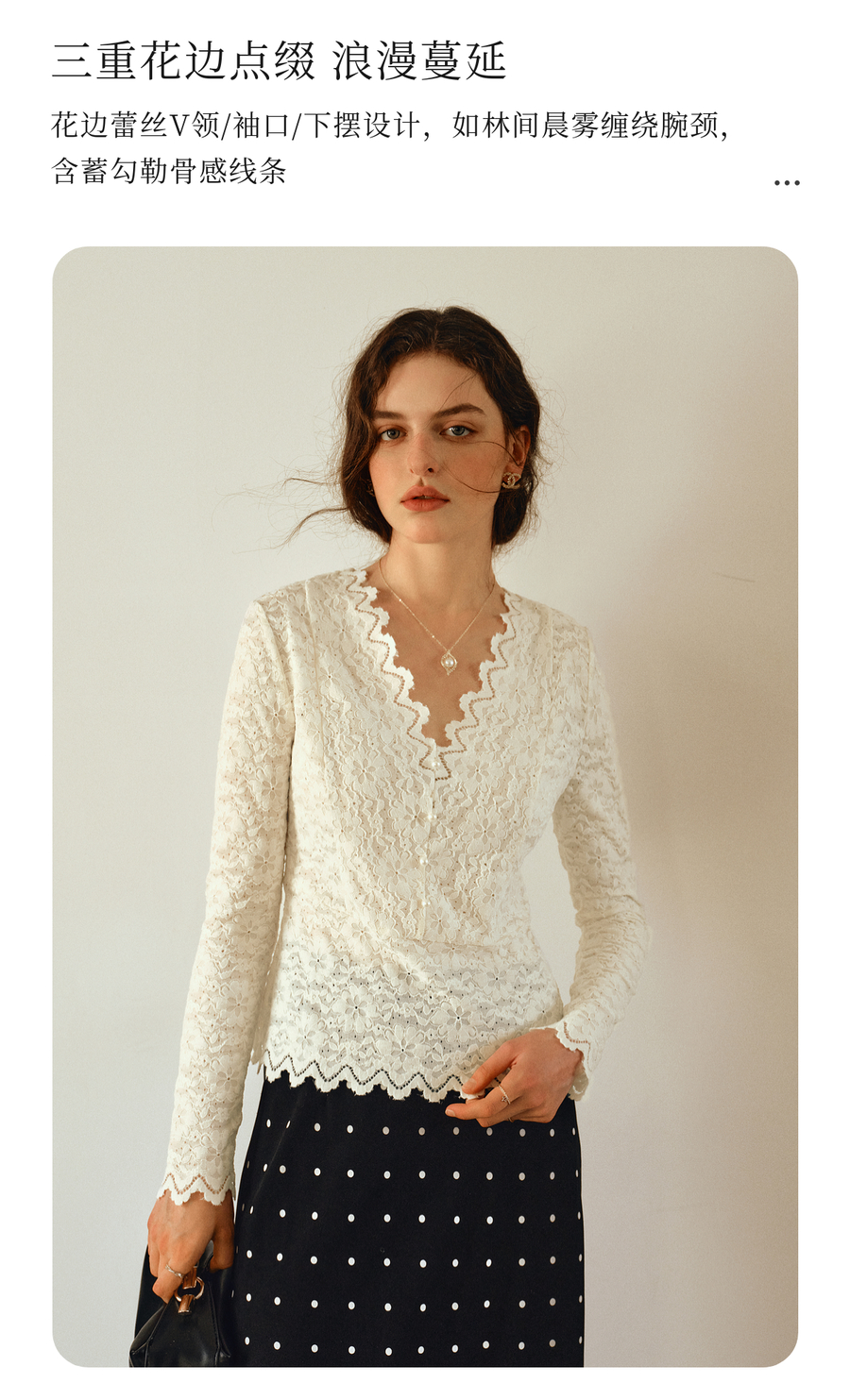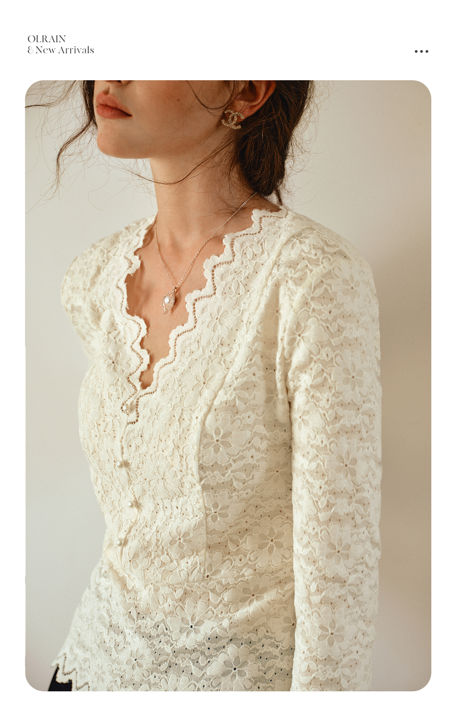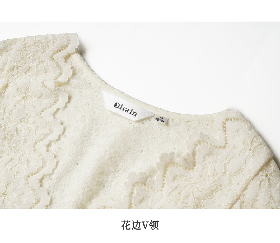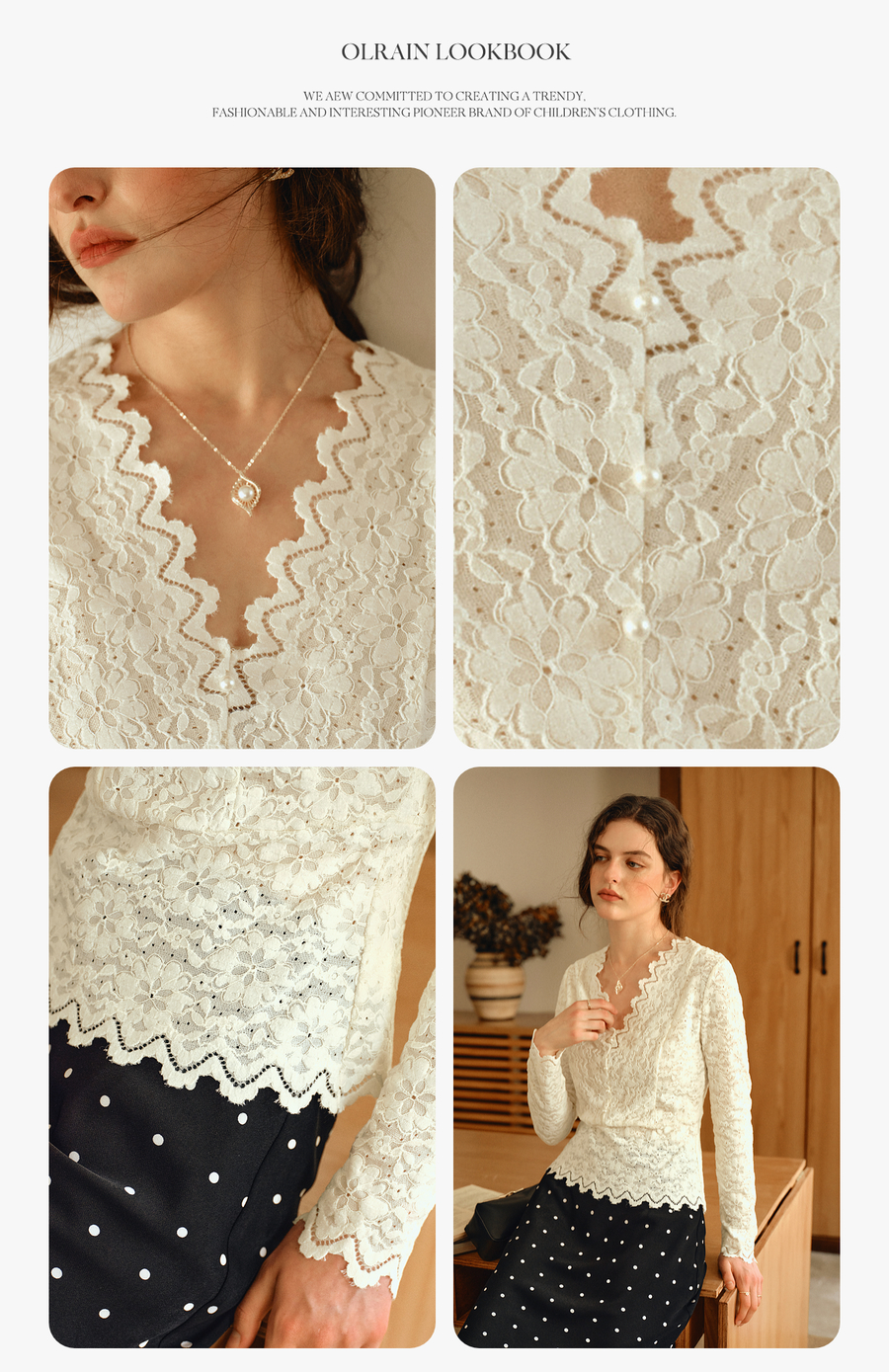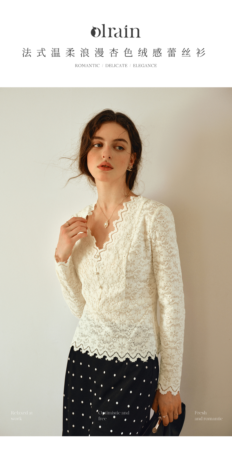 OLrain欧芮儿2025新款女秋季法式温柔浪漫杏色绒感蕾丝衫短款上衣