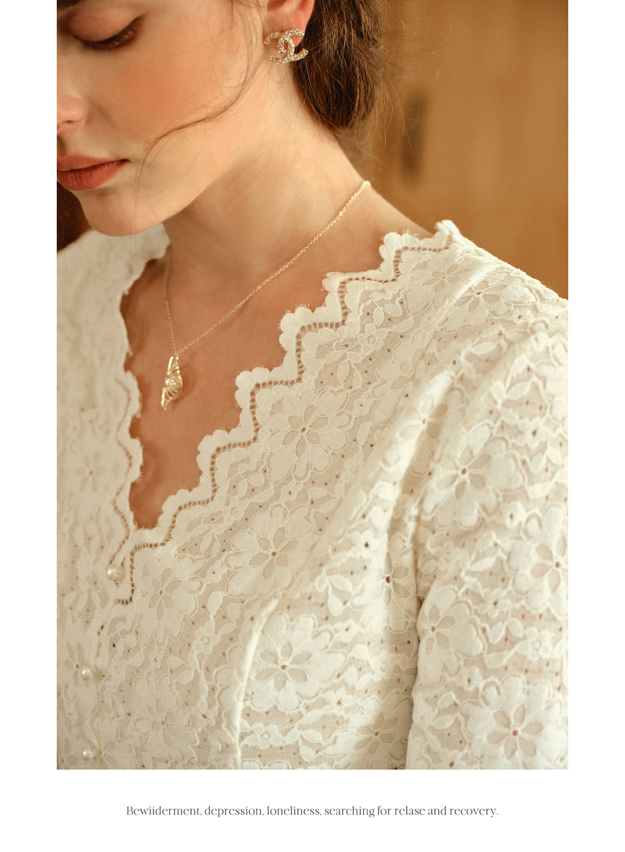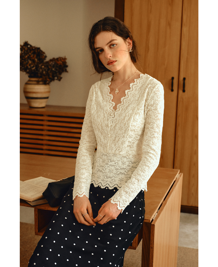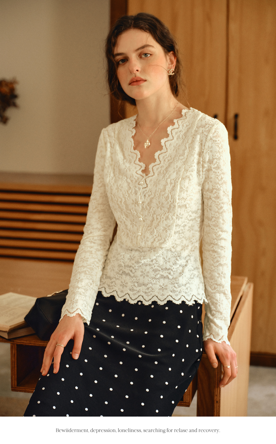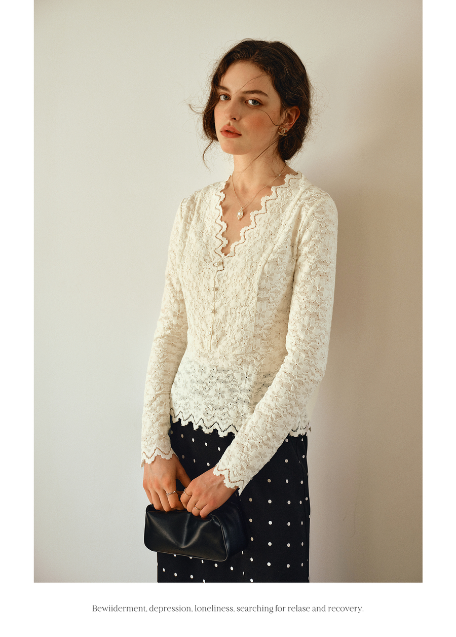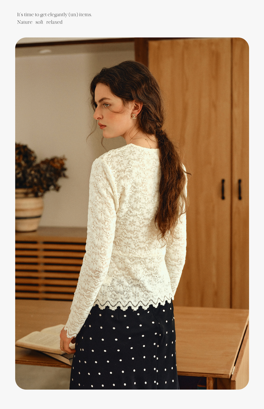 OLrain欧芮儿2025新款女秋季法式温柔浪漫杏色绒感蕾丝衫短款上衣