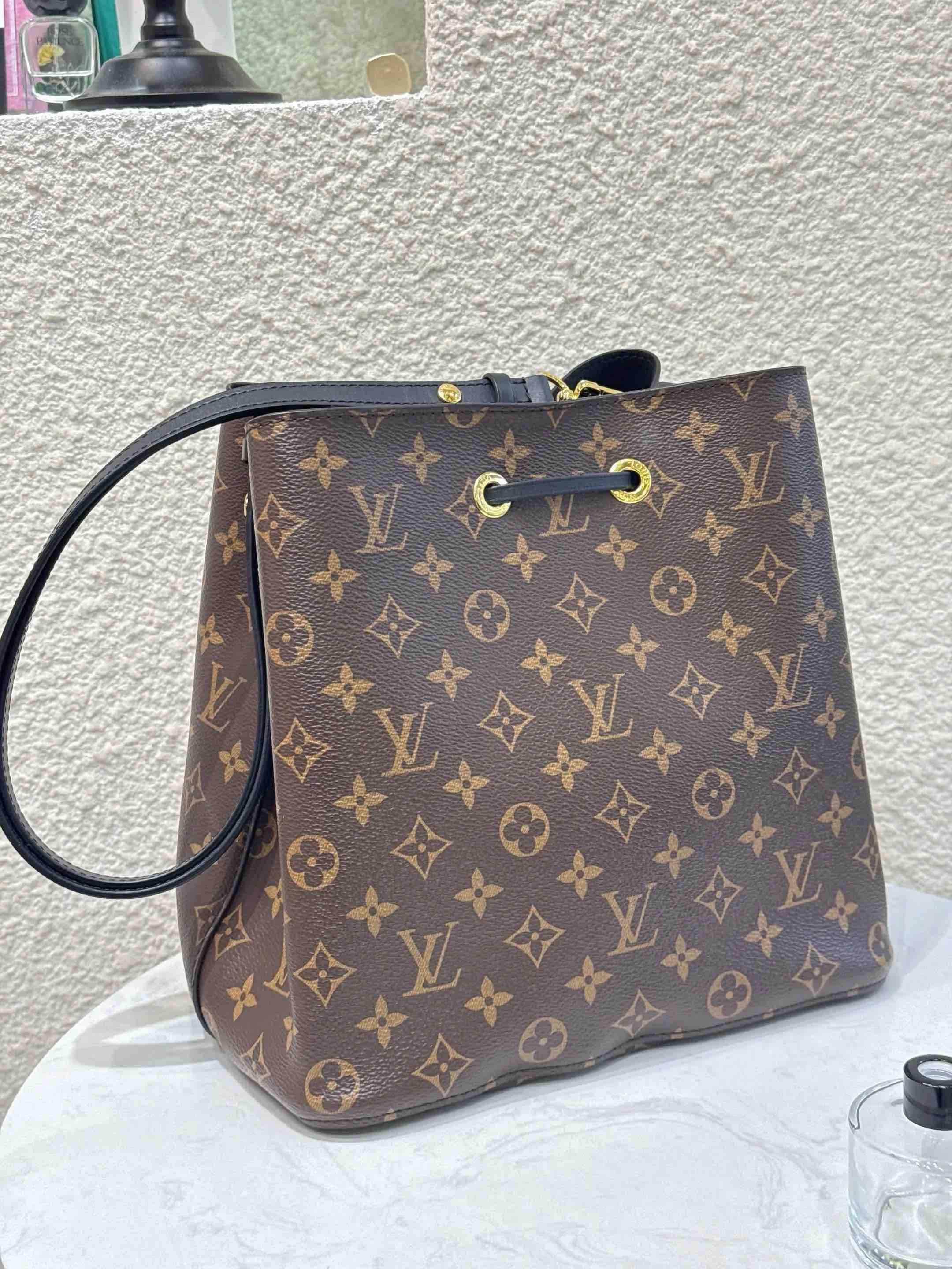 【商品详情】正品二手 Lv 黑色 老花 水桶包😎97新 27x25 配件:肩带 防尘袋。永不过时的经典。