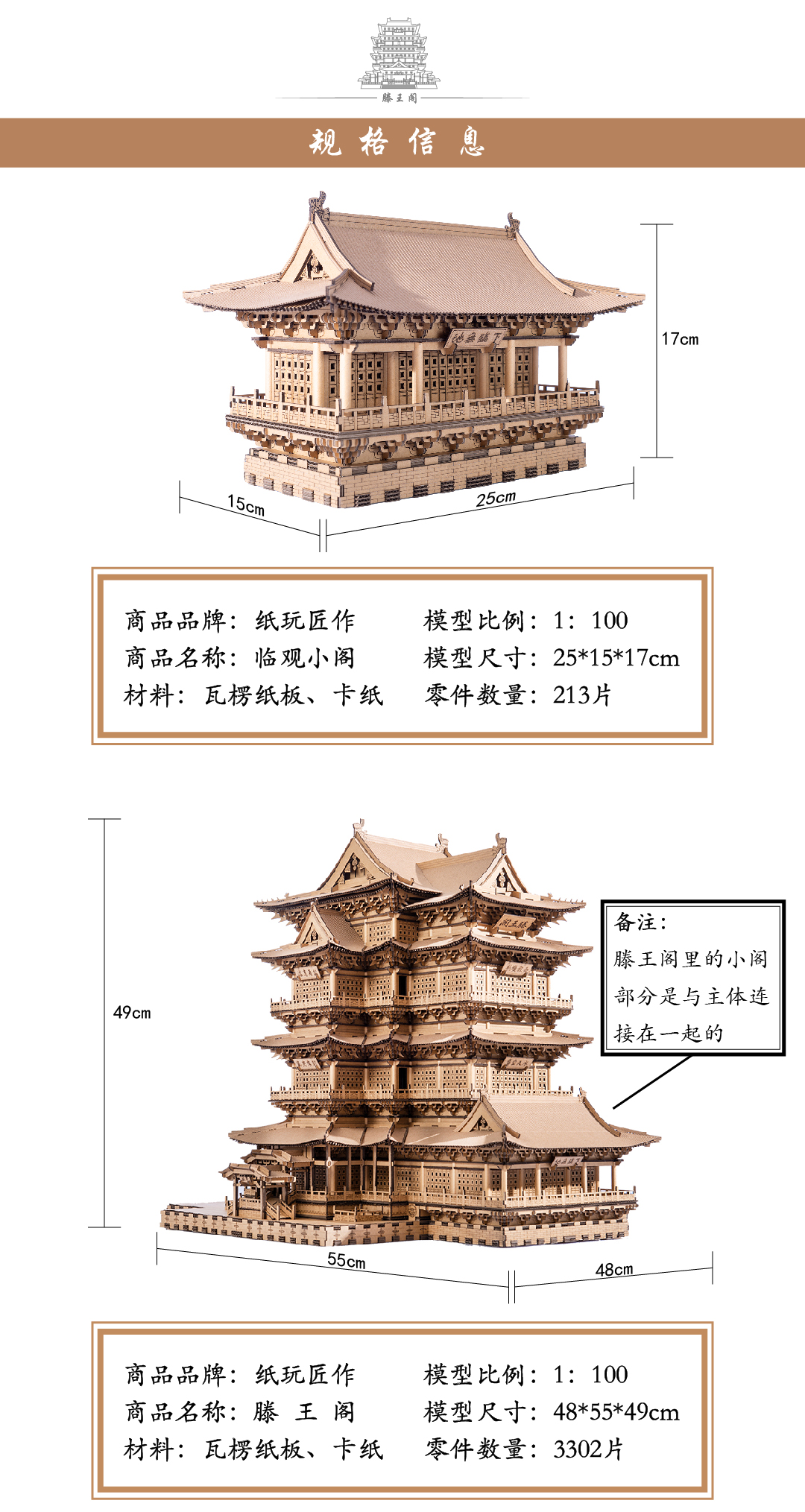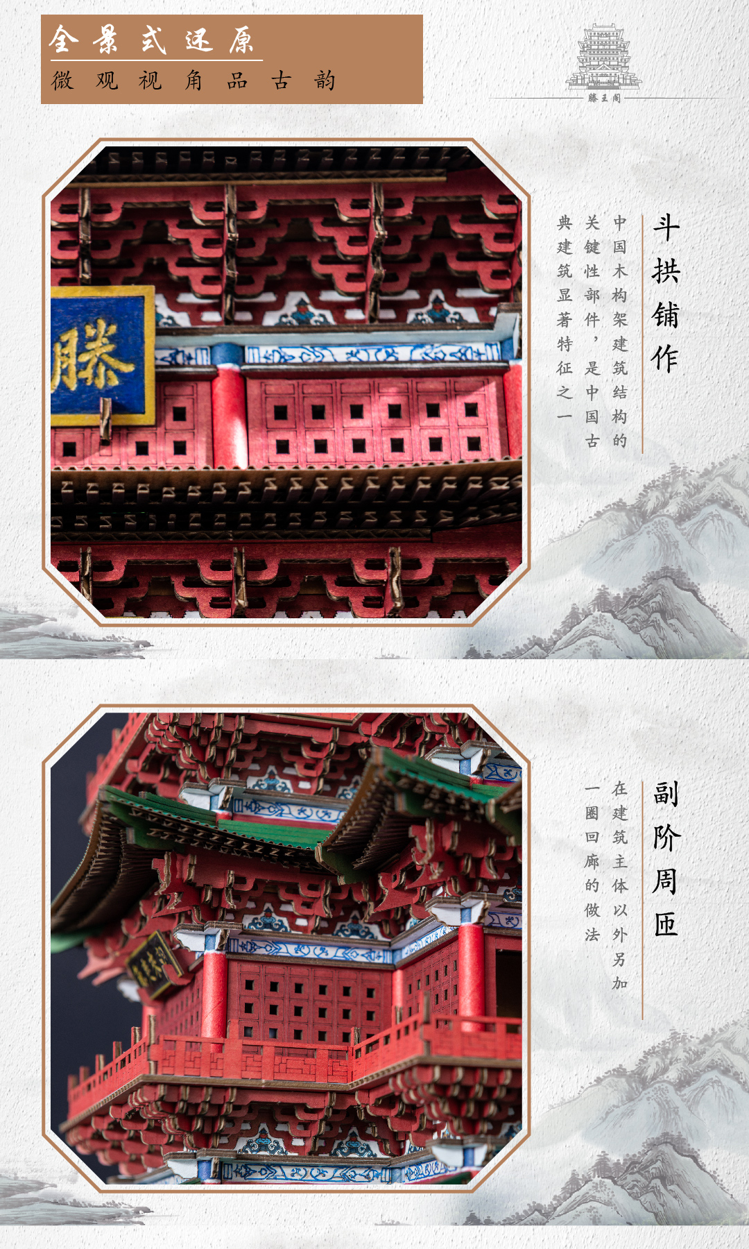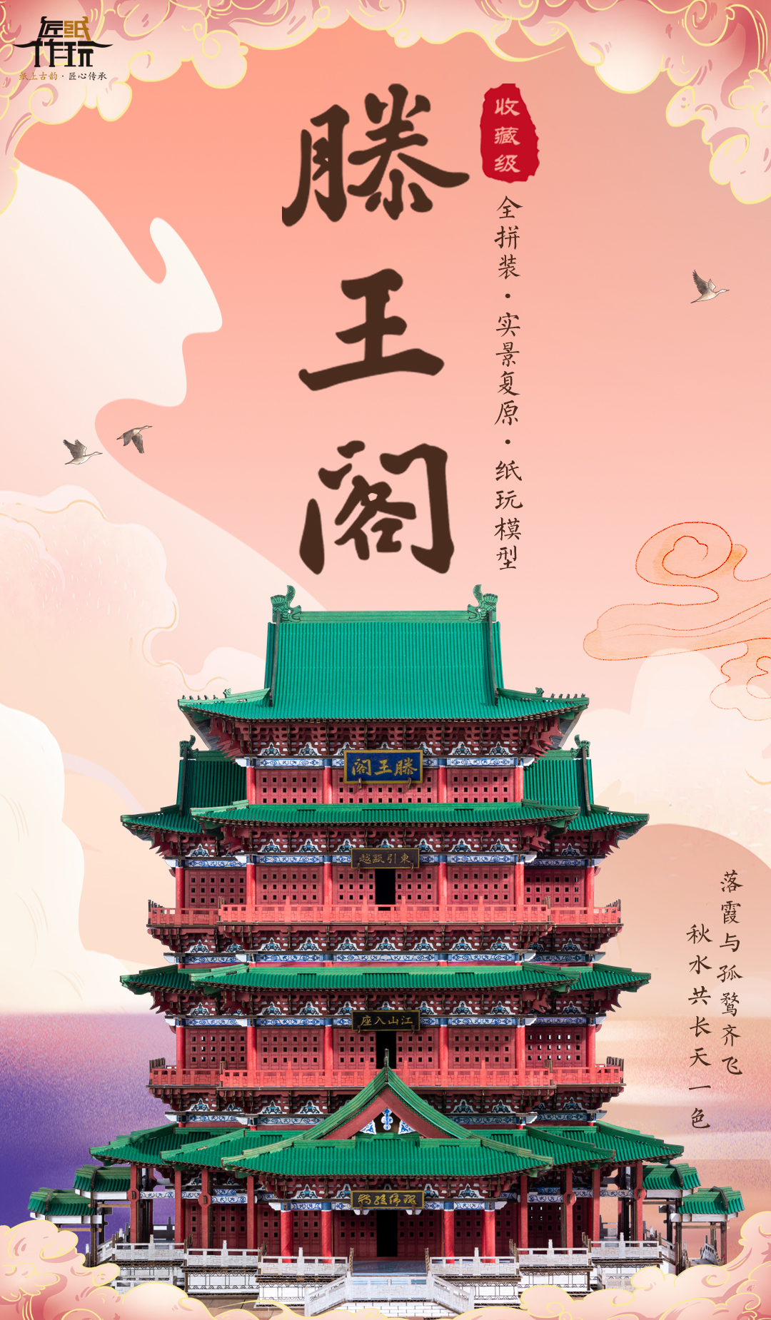 南昌滕王阁 中国古建筑纸质榫卯积木 全拼装纸玩模型 创意礼物