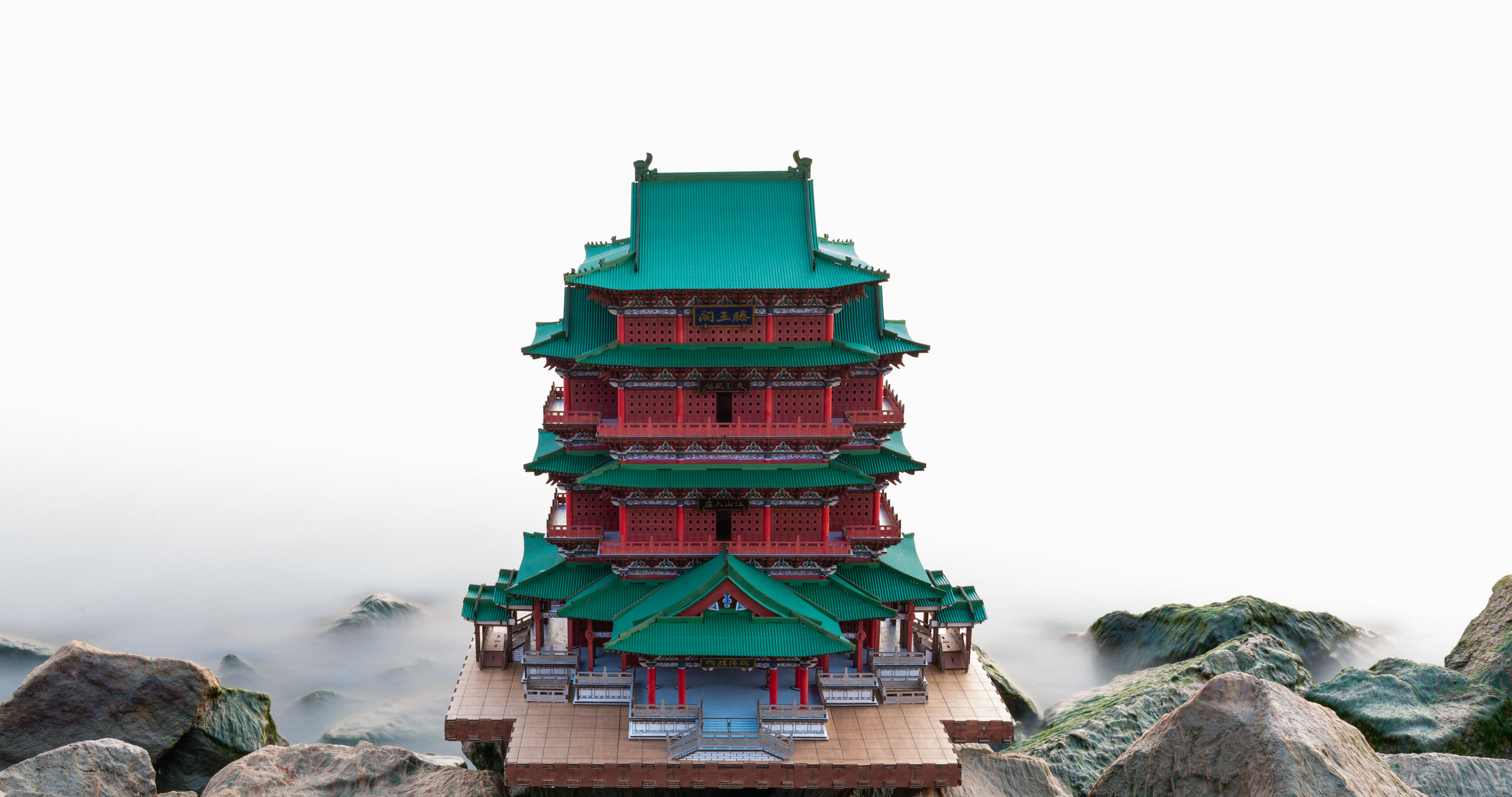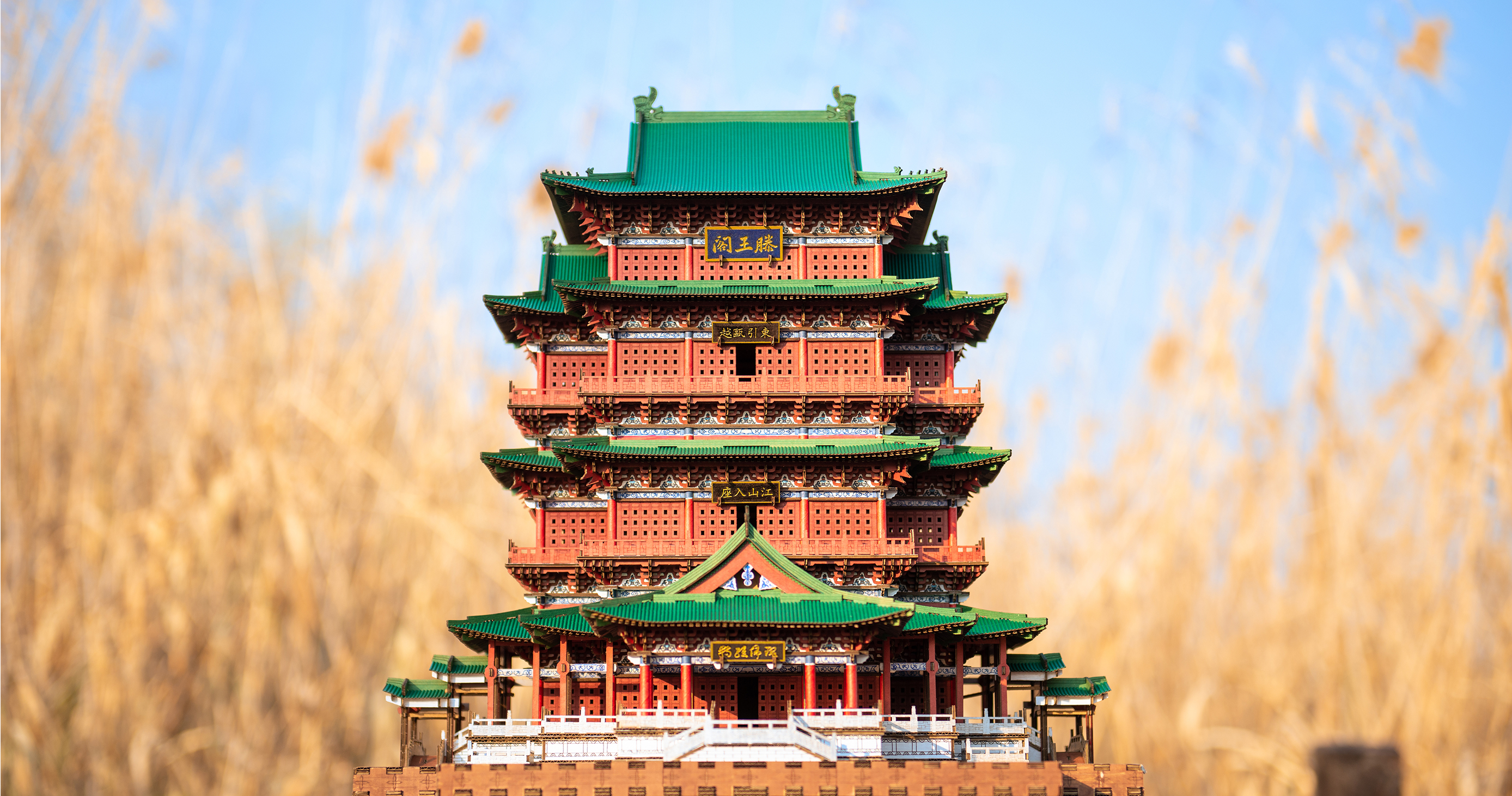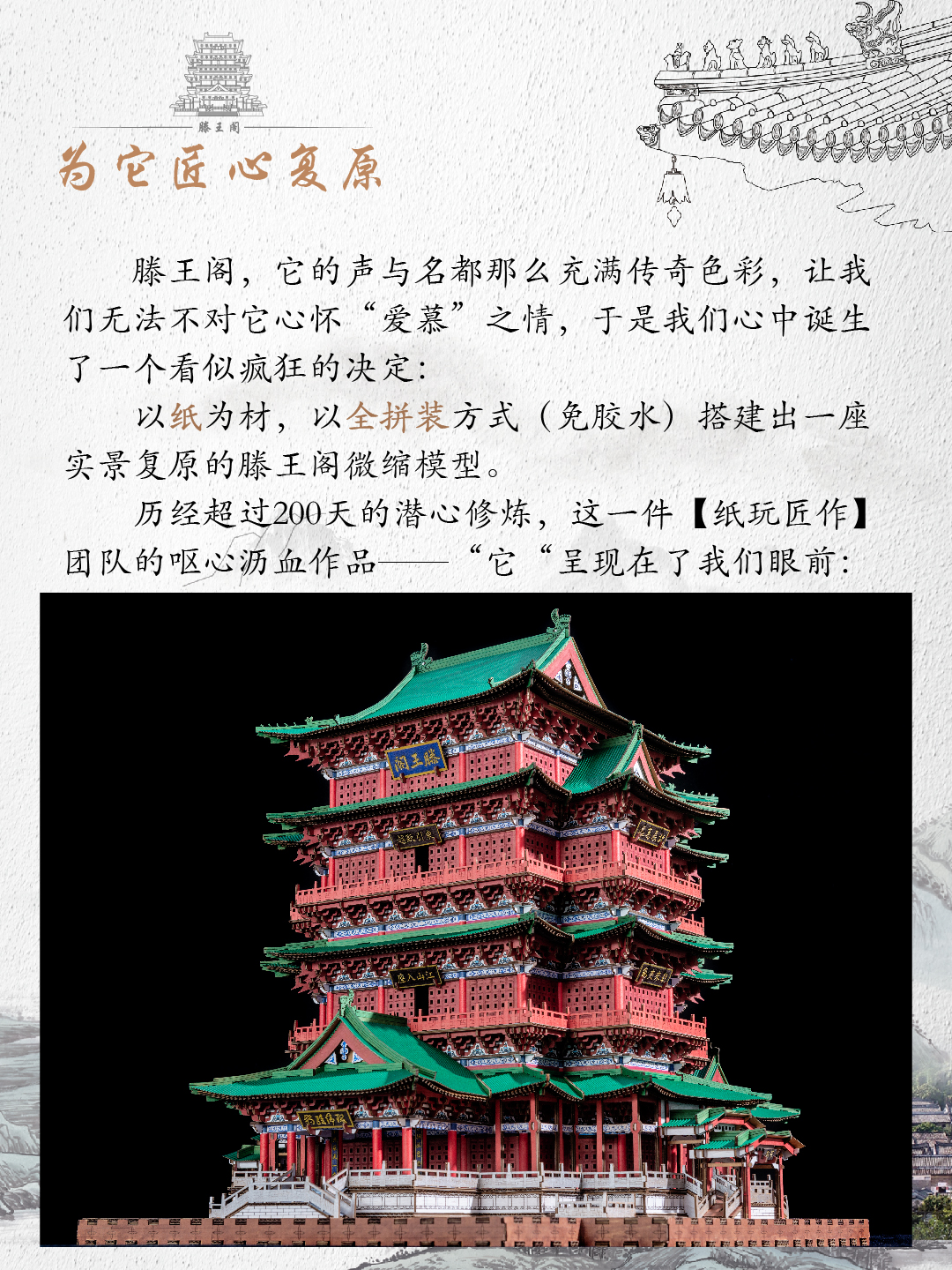 南昌滕王阁 中国古建筑纸质榫卯积木 全拼装纸玩模型 创意礼物