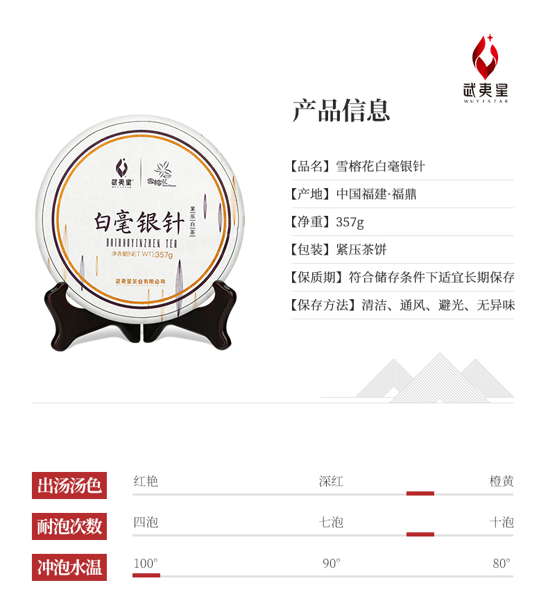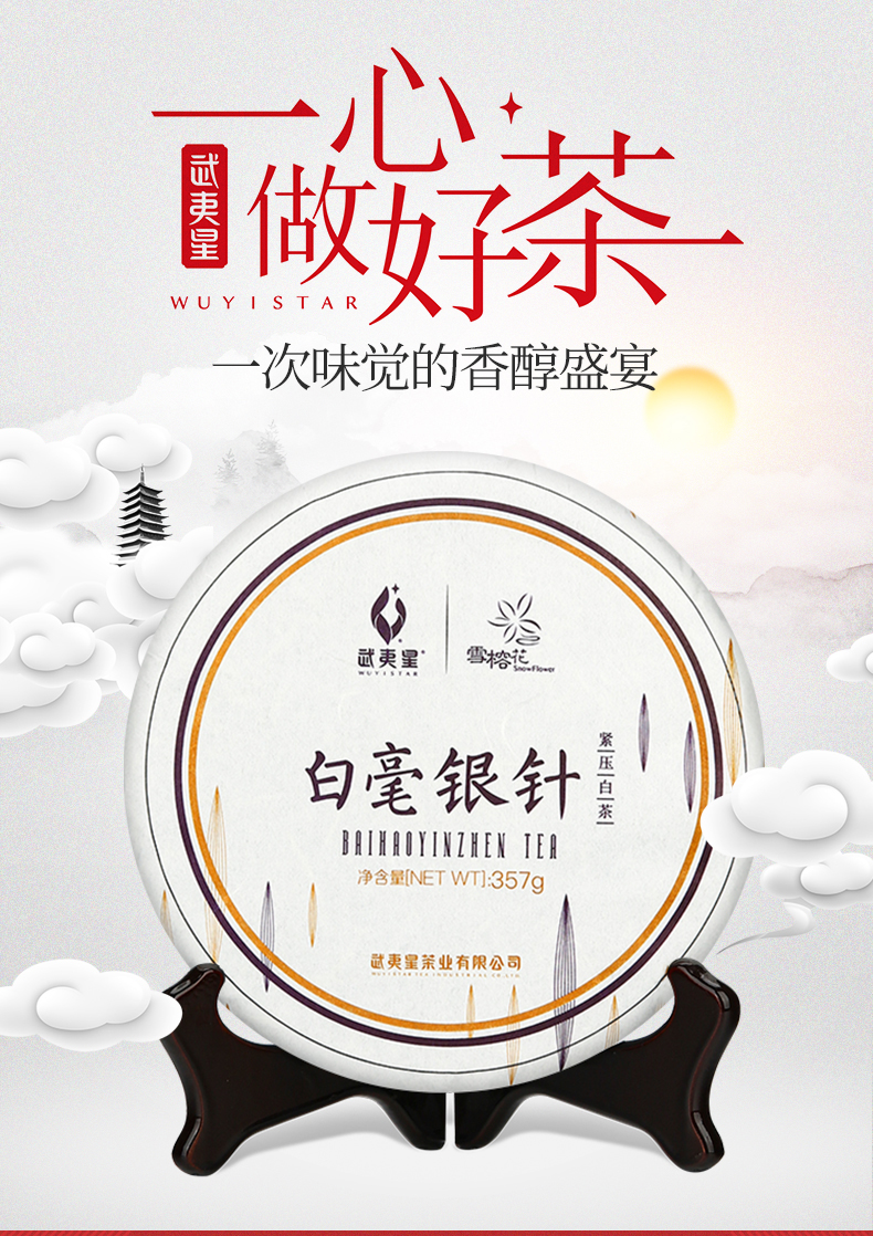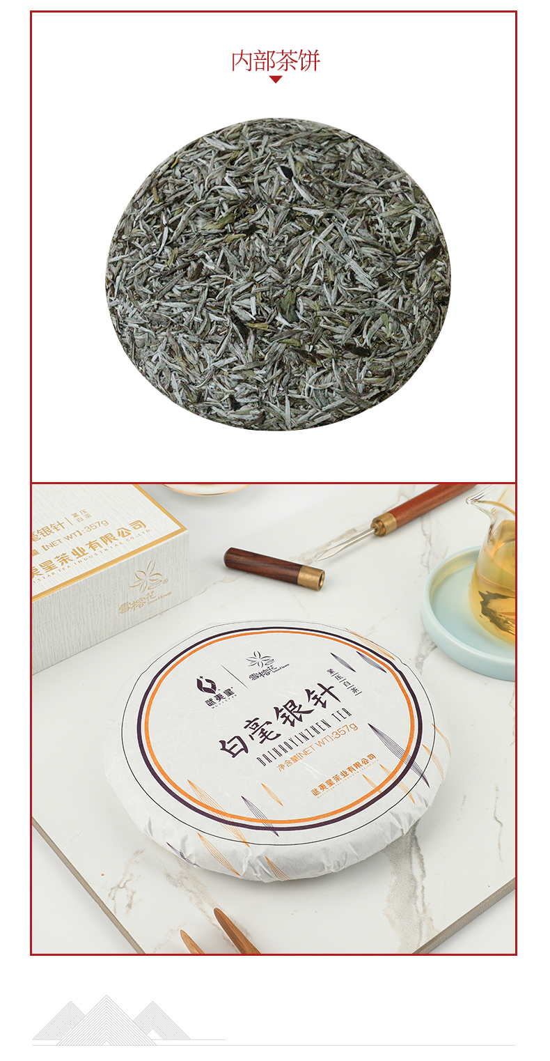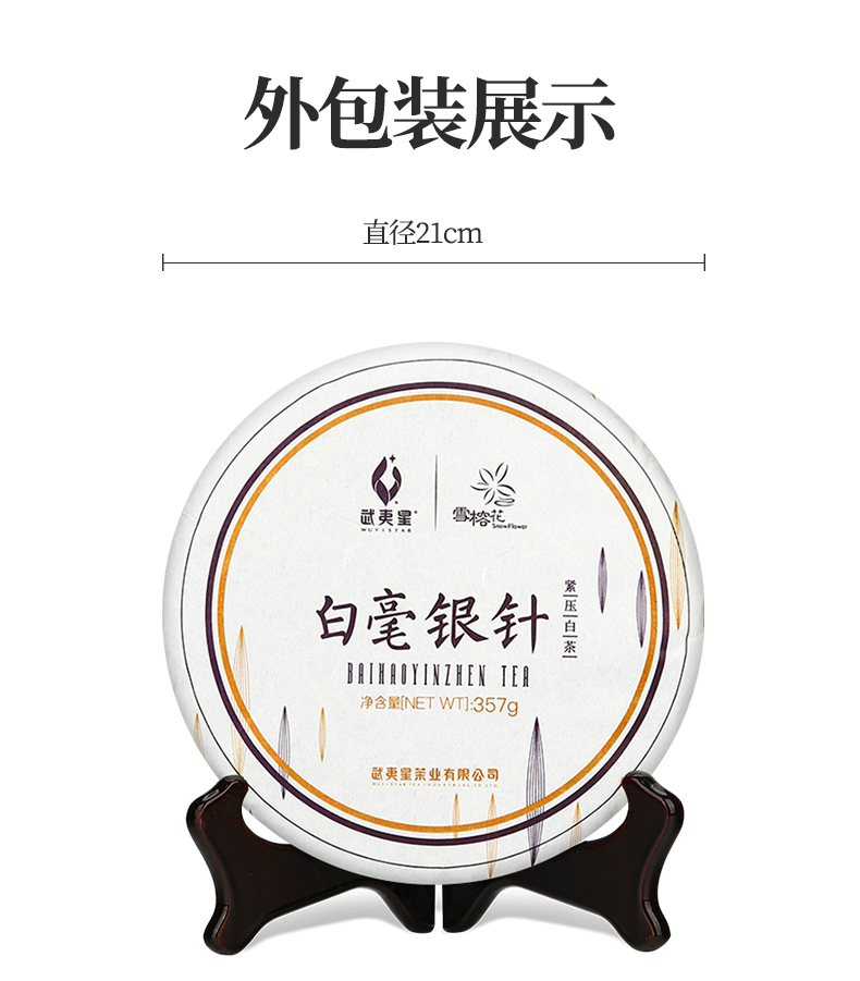 武夷星茶叶雪榕花白毫银针357g饼装福建福鼎白茶茶叶老白茶自饮茶