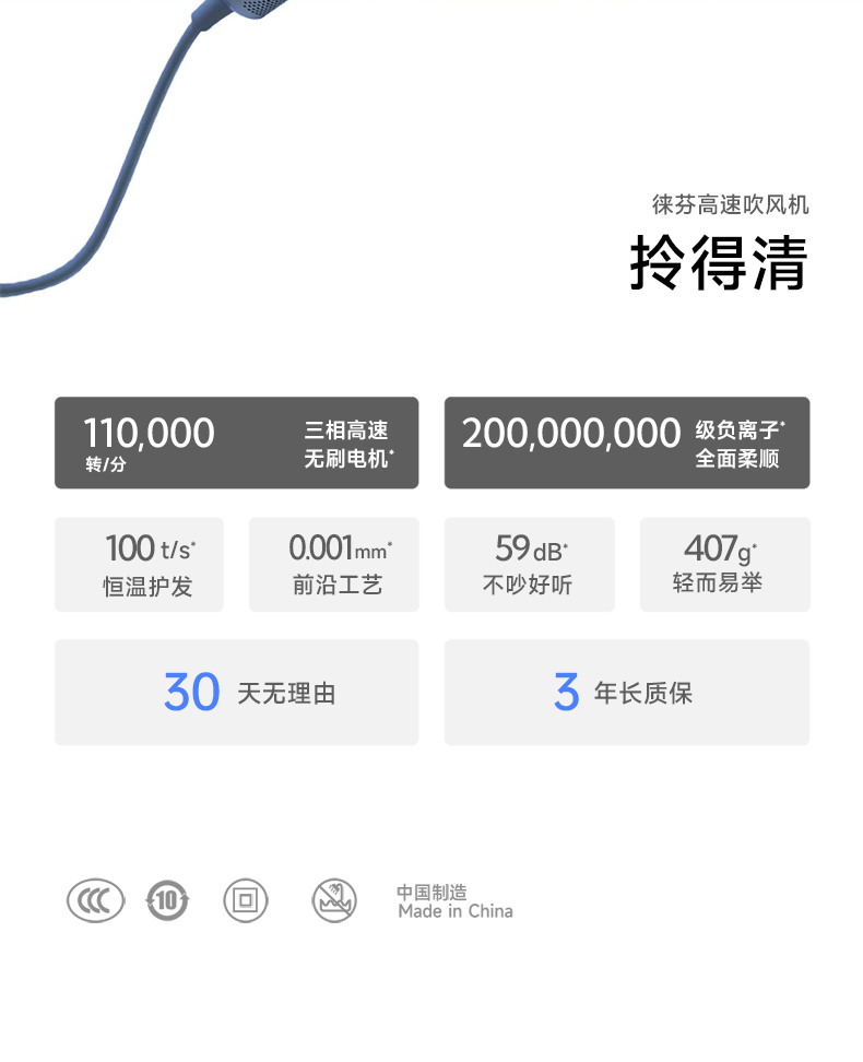 Laifen徕芬高速吹风机Swift 3 负离子护发速干低噪电吹风高速吹风机 赠支架收纳包 家用宿舍便携风筒