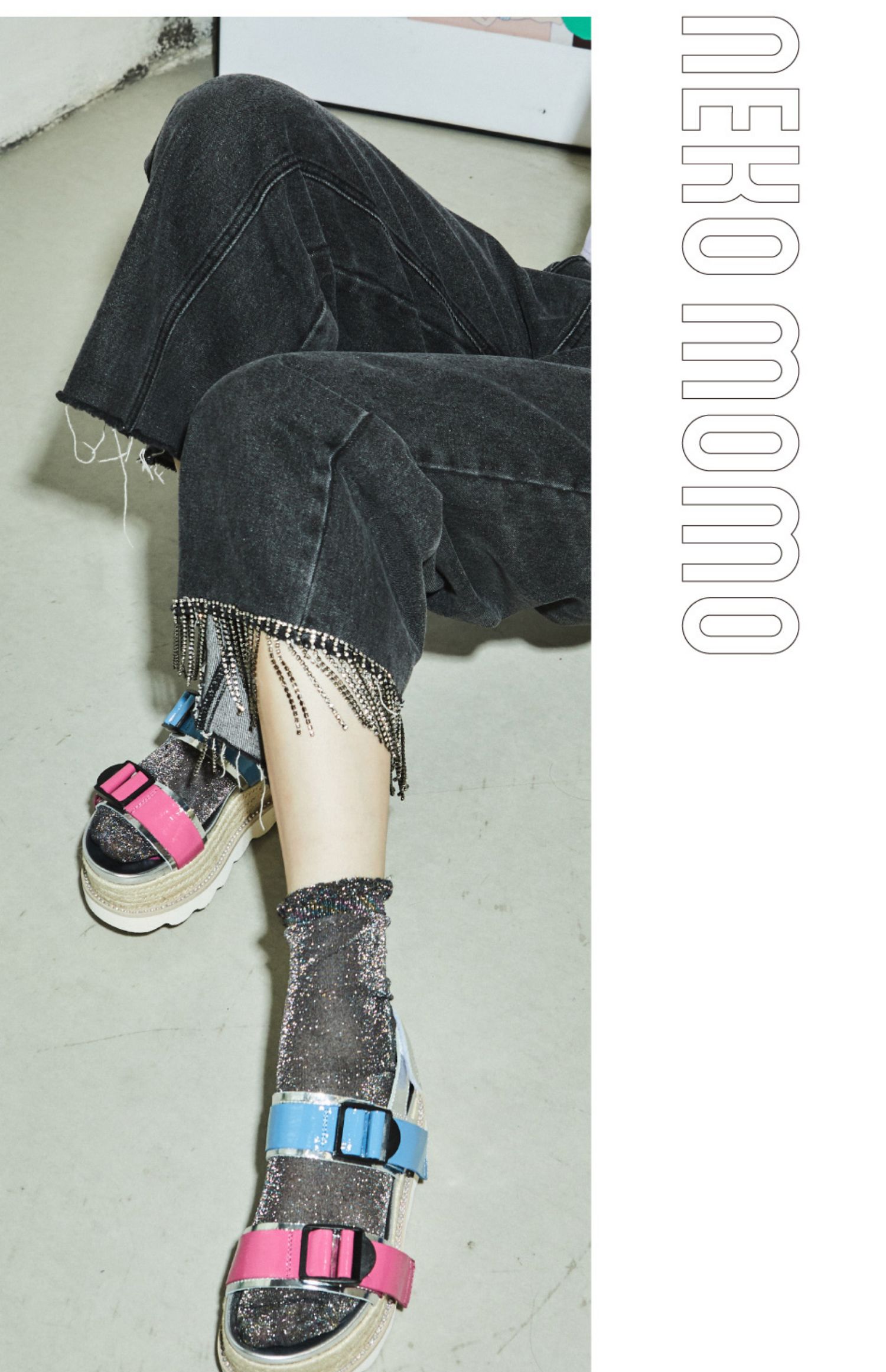 nekomomo夏季商场同款ins潮牛皮松糕厚底运动风坡跟凉鞋女搭裙子23751