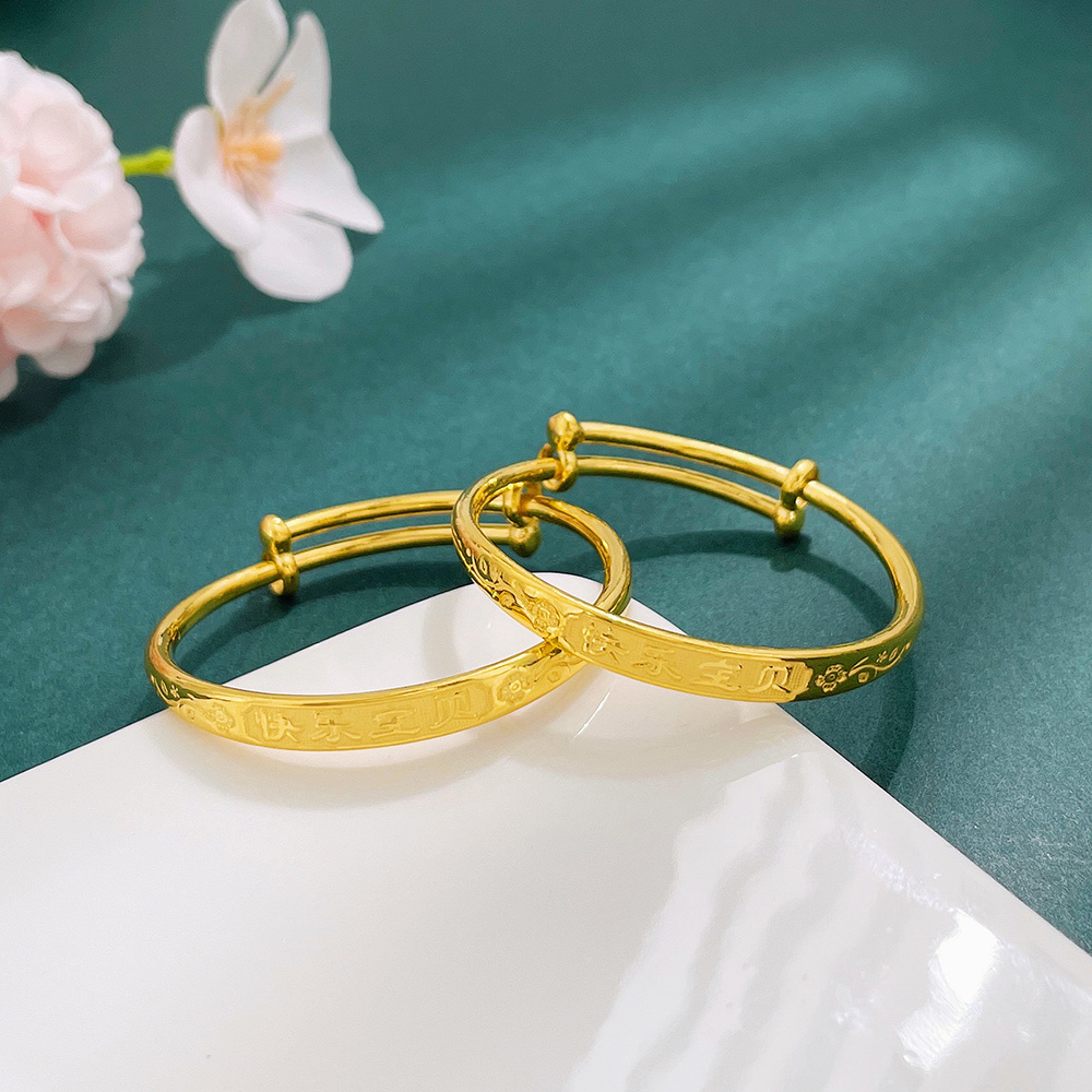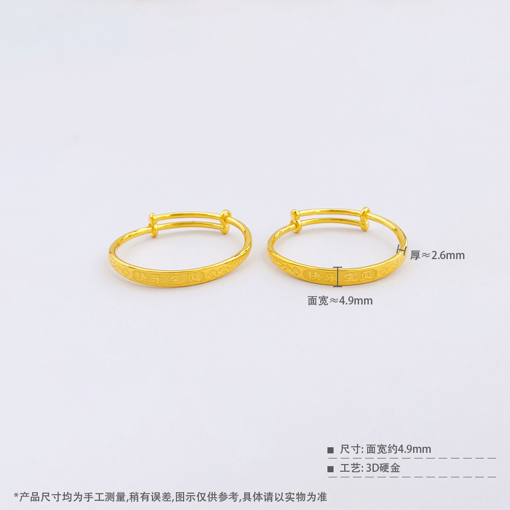 【限时克减150元】足金 #儿童/宝宝 3D硬金空心推拉童镯快乐宝贝宝宝童镯/对(面宽约4.7-5.1mm,厚约2.6mm(AR3DTZ00019)预售产品下单后不退款不退货不换货不补差价