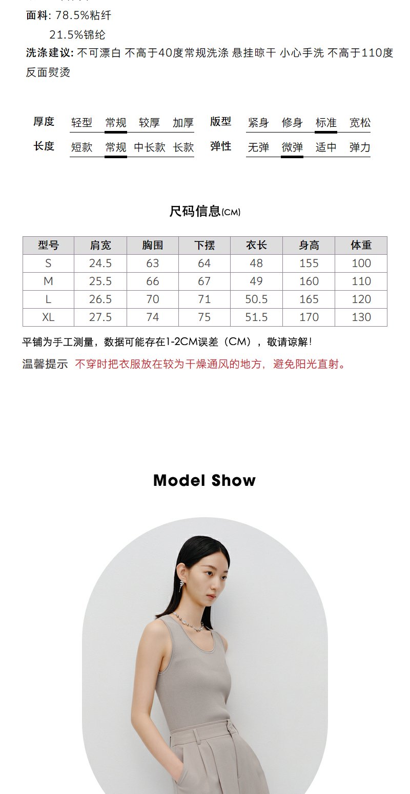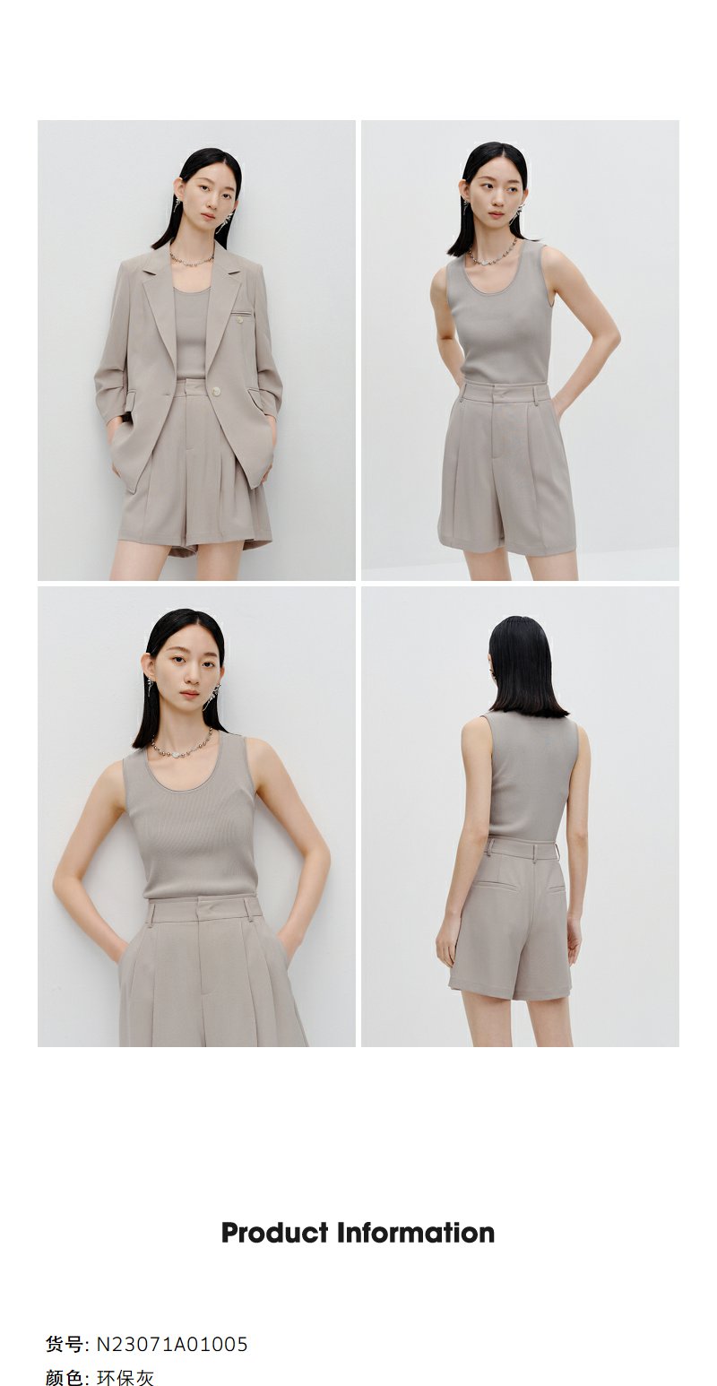 NEELLY纳俪商场同款气质高级灰无袖背心女时尚百搭修身小上衣外穿N23071A01005