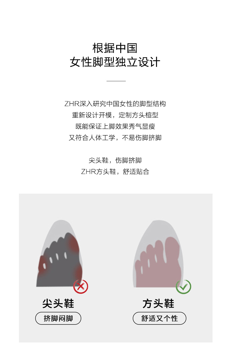 - ZHR一个有态度的女鞋品牌,以具有高性价比、舒适度、美观度的产品和优质服务赢得粉丝青睐