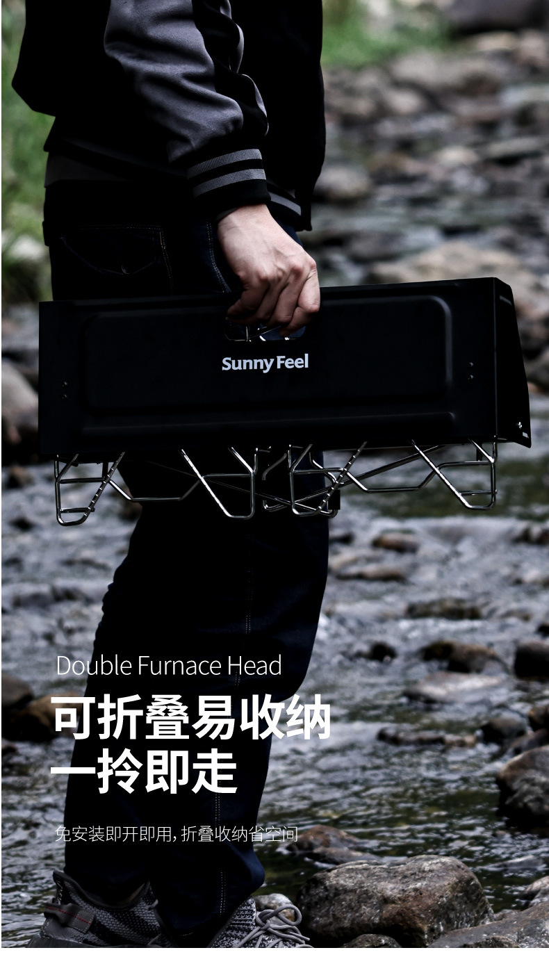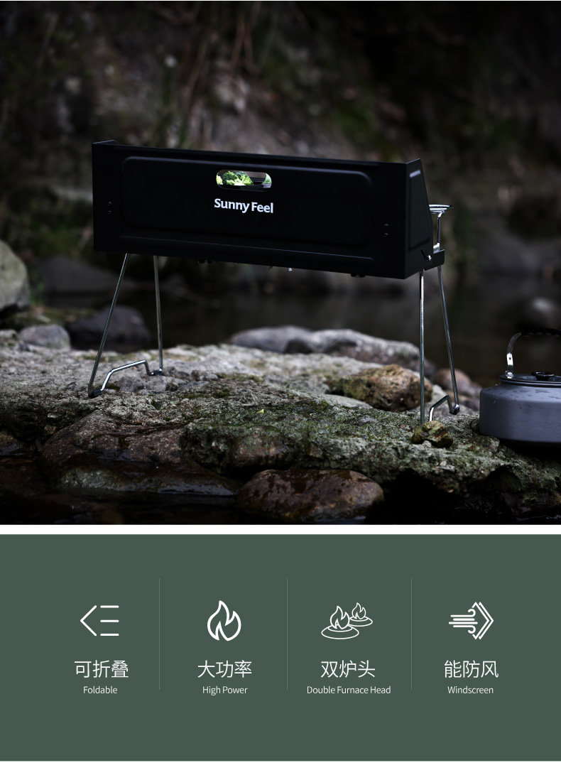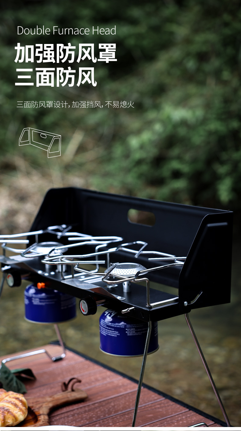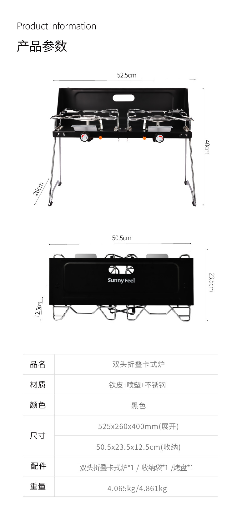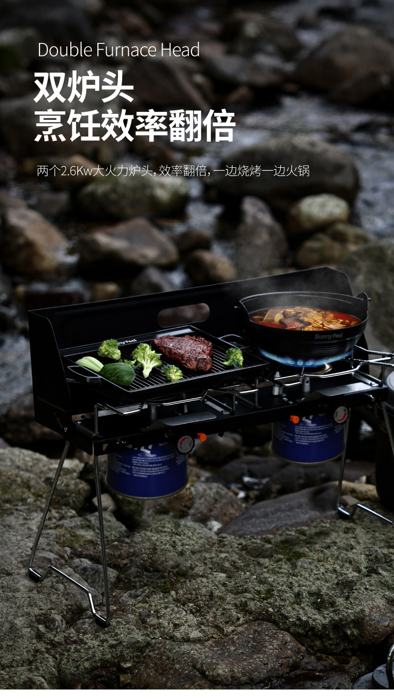 SunnyFeel户外露营烧烤炉野营燃气炉_便携式野餐双头折叠卡式炉