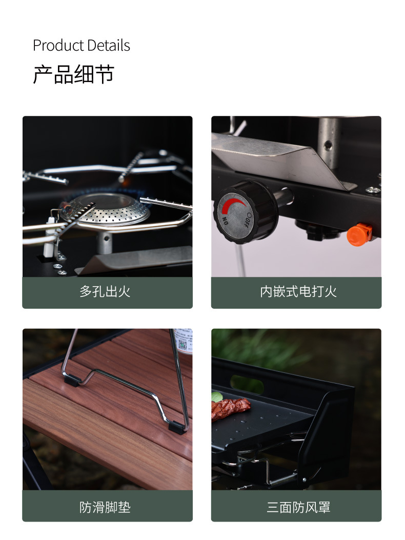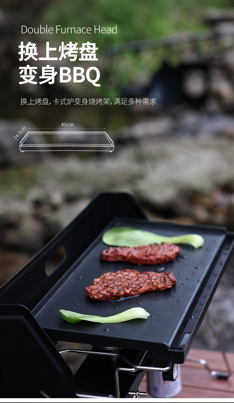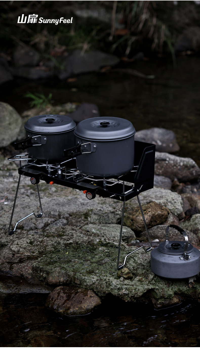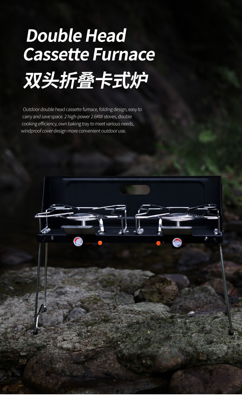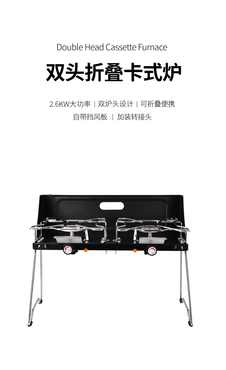 SunnyFeel户外露营烧烤炉野营燃气炉_便携式野餐双头折叠卡式炉