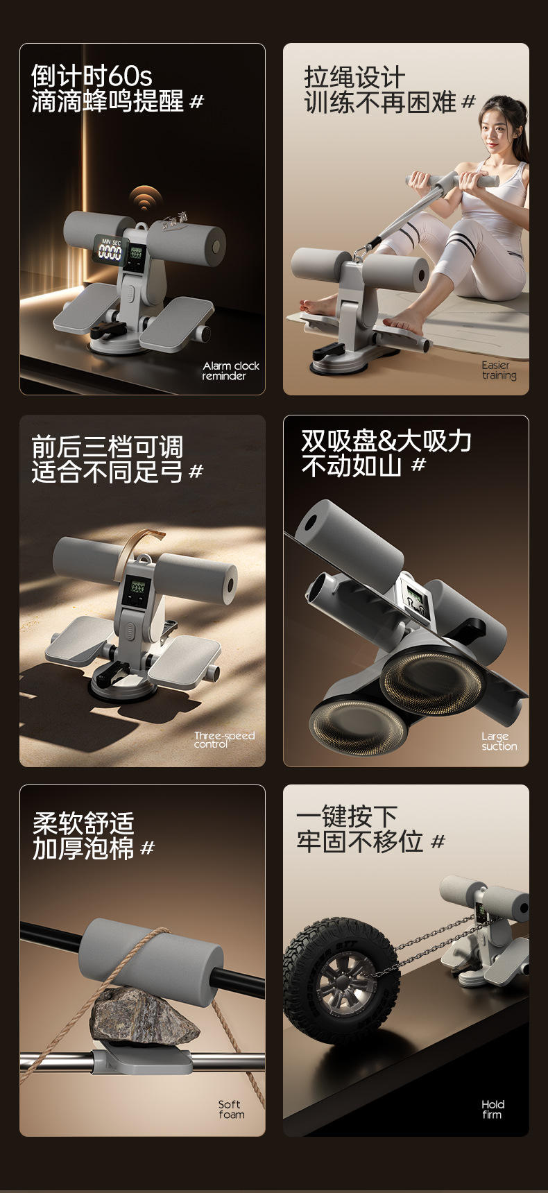 【新款仰卧起坐计数辅助器】家用吸盘式健腹器 健身器材 双吸盘大吸力更稳固