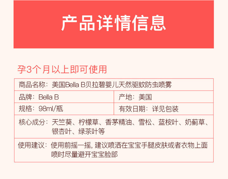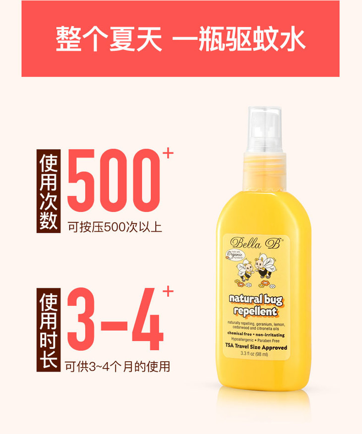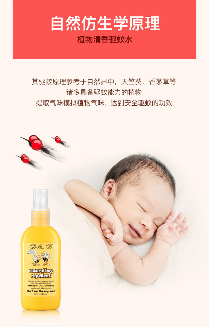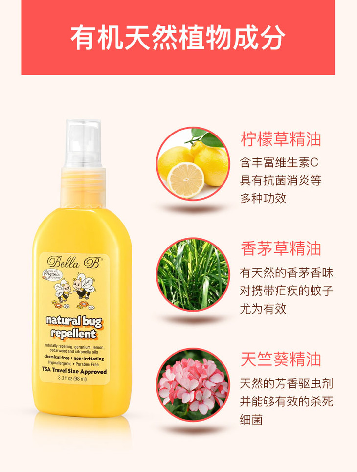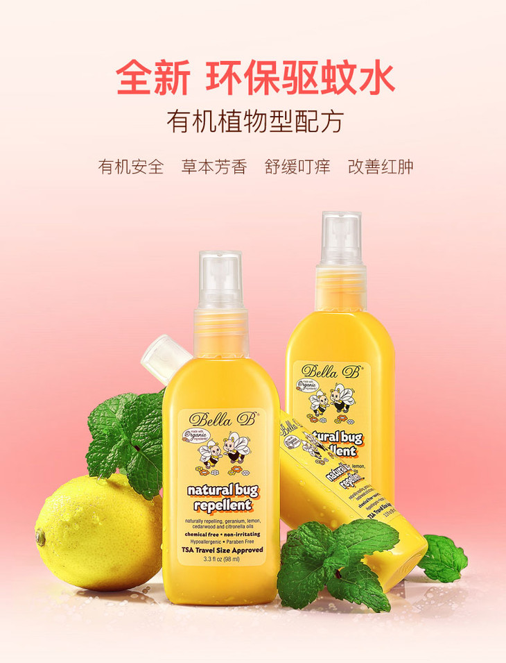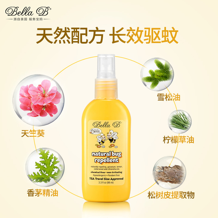 【保税仓】美国Bella B贝拉碧婴儿天然驱蚊防虫喷雾3.3oz(98ml)/瓶