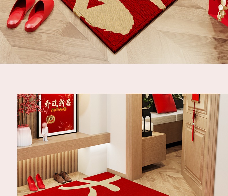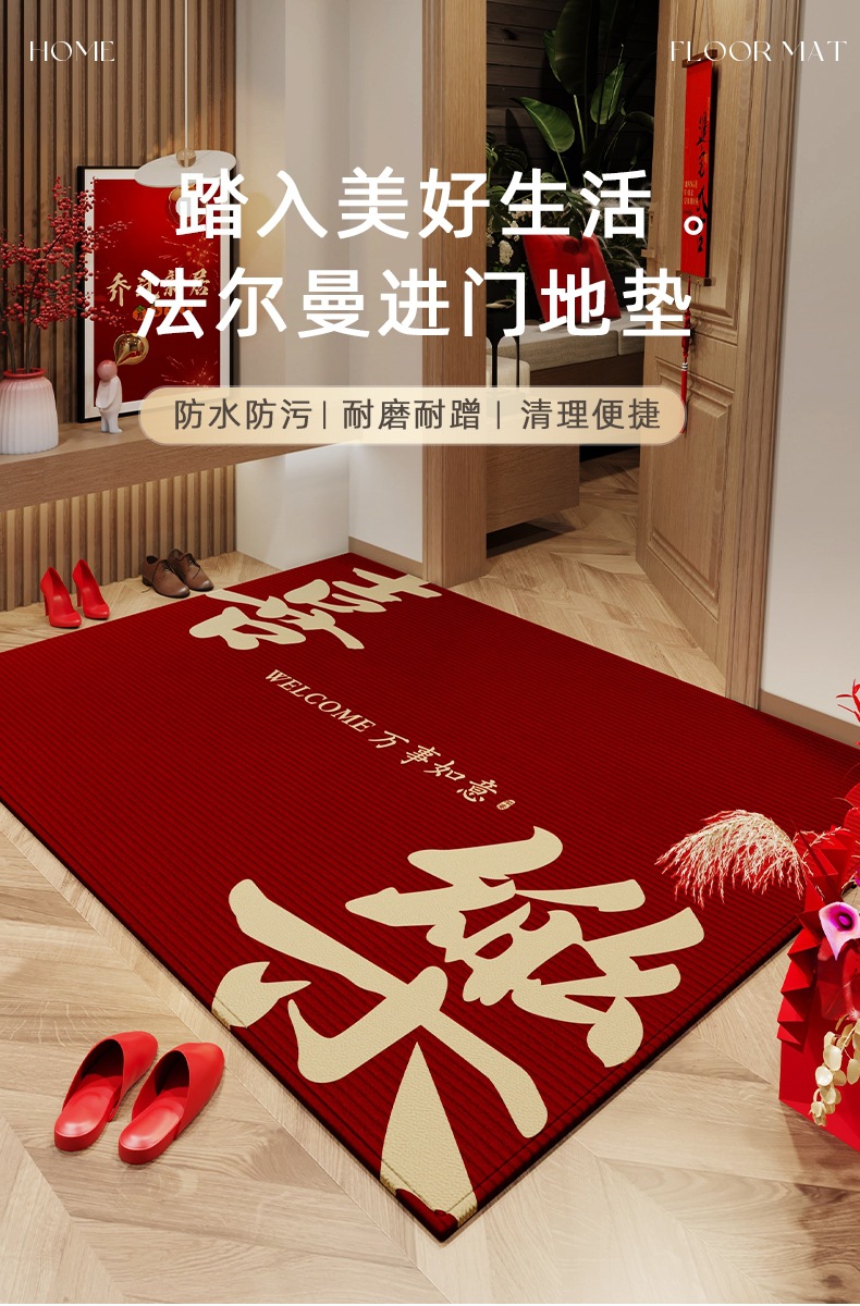【地垫入户门垫】进门门口玄关地毯 乔迁结婚防滑脚垫可裁剪红色喜庆