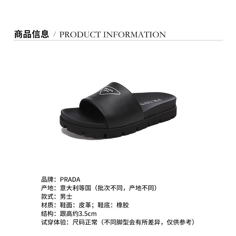 PRADA/普拉达【22春夏新款】男士皮革徽标装饰拖鞋凉拖 2X3060 A21