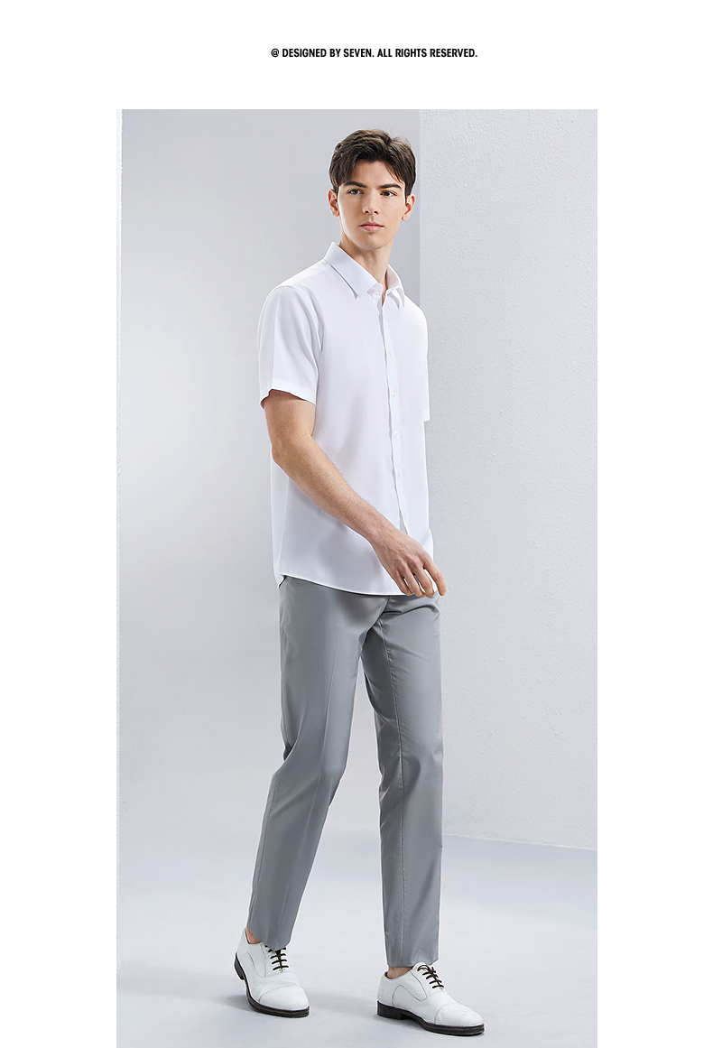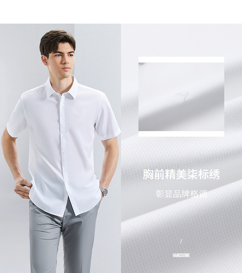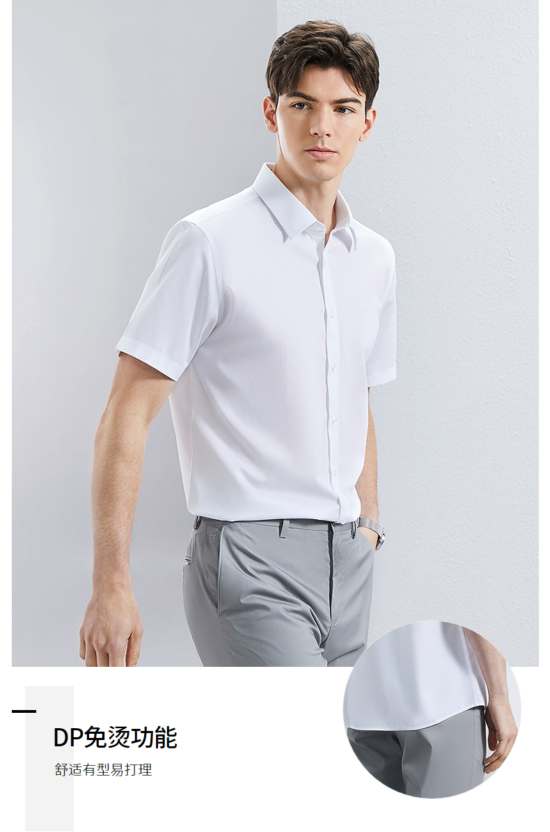【DP免烫】柒牌纯棉短袖衬衫男2024夏季新款商务正装易打理衬衣薄 126A70470