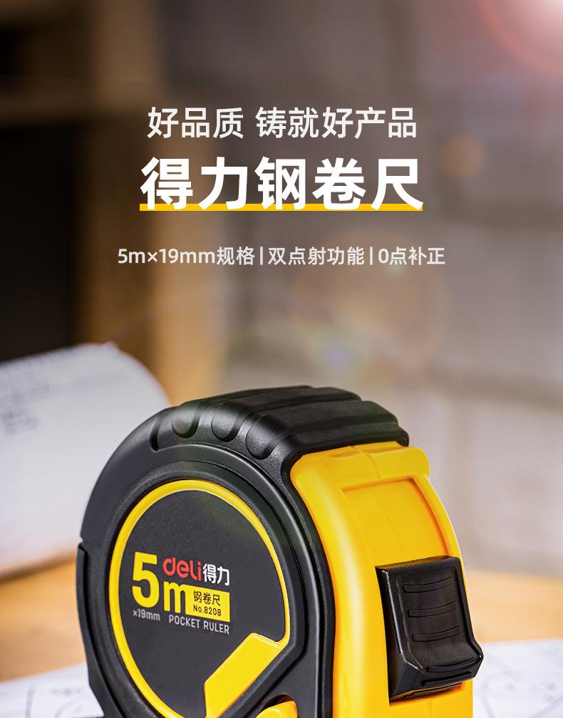 得力8208 5米钢卷尺测量卷尺5m钢卷尺子5m×19mm加宽型全包胶批发 商品图1