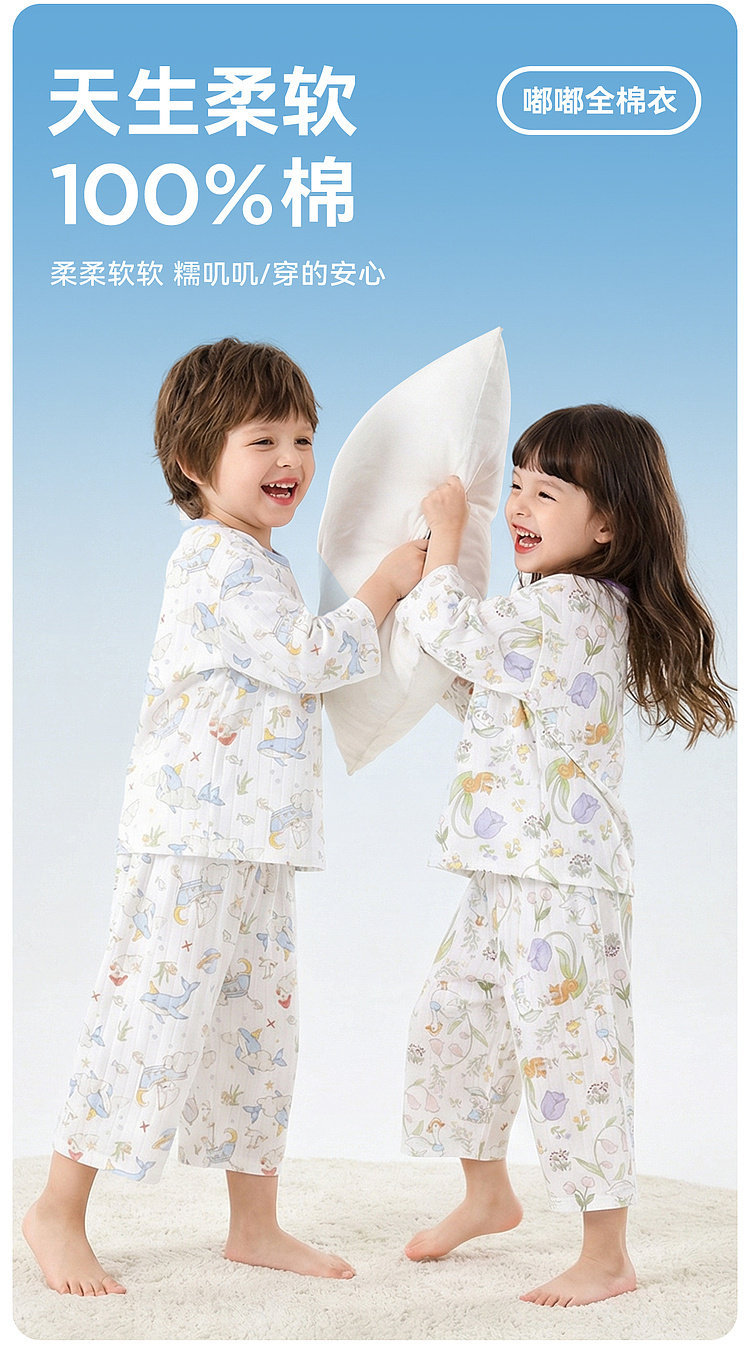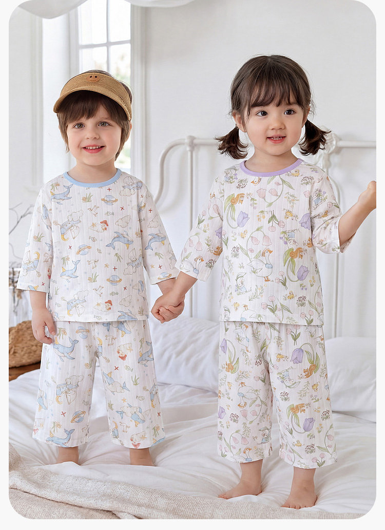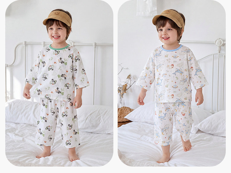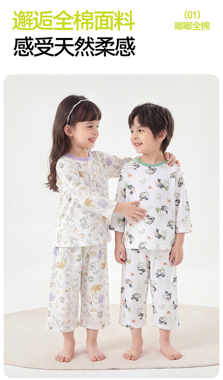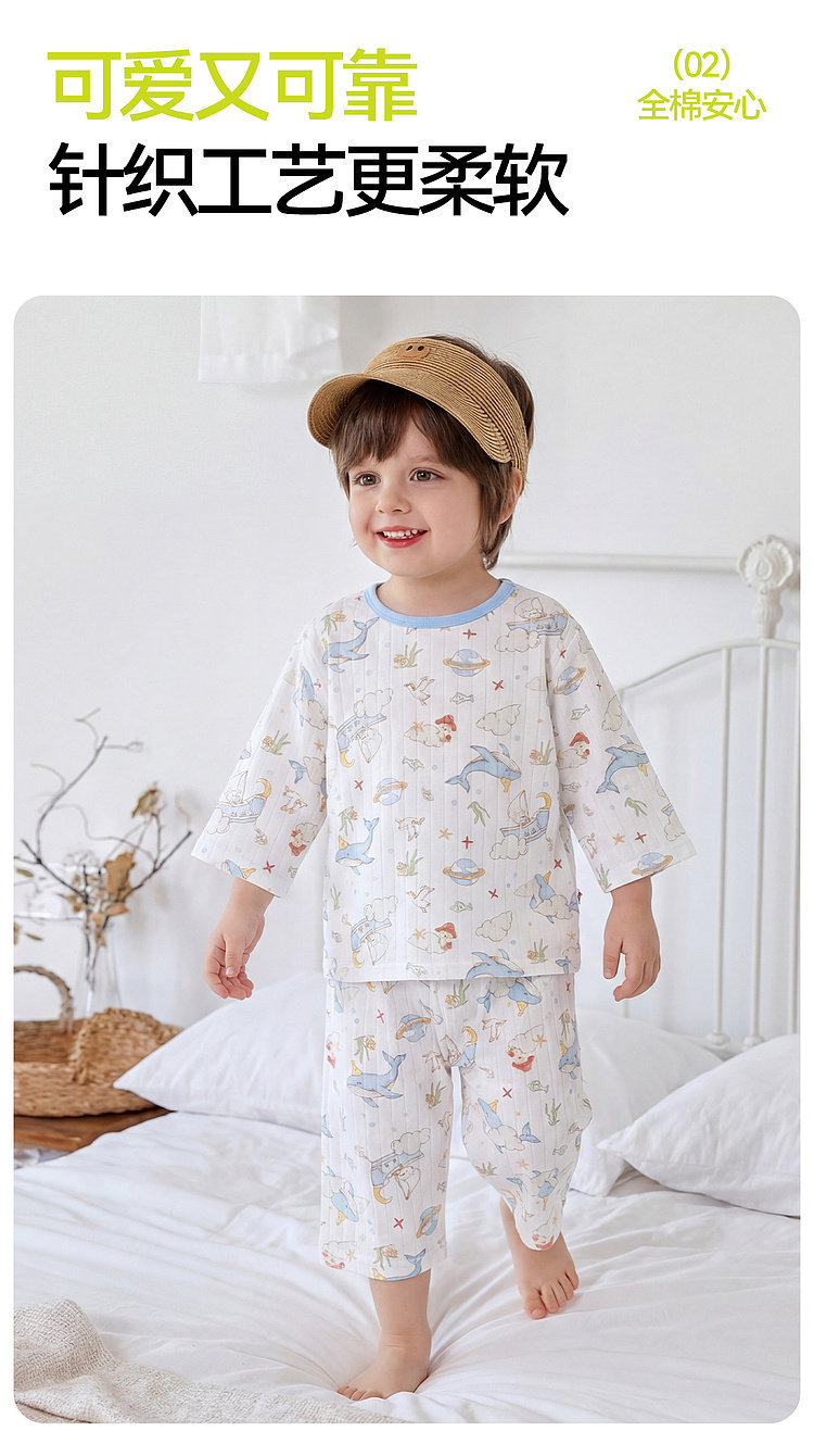 嘟嘟家儿童睡衣套装夏季男童纯棉家居服夏装宝宝空调服女童衣服潮F6BJJ022