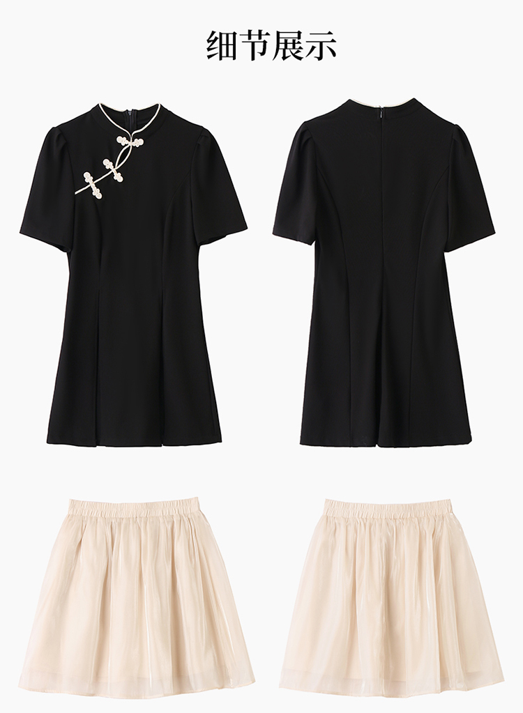 时尚新中式,旗袍盘扣上衣配网纱半身短款茶系两件套HR-HRYZ9650