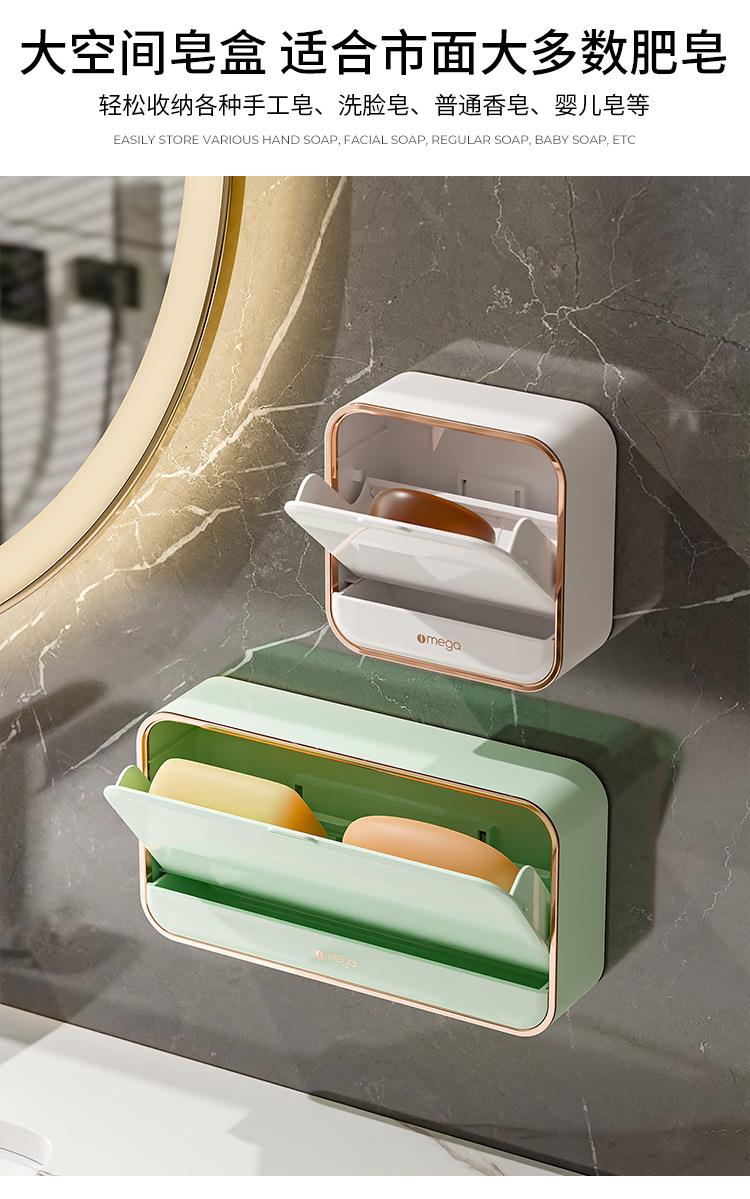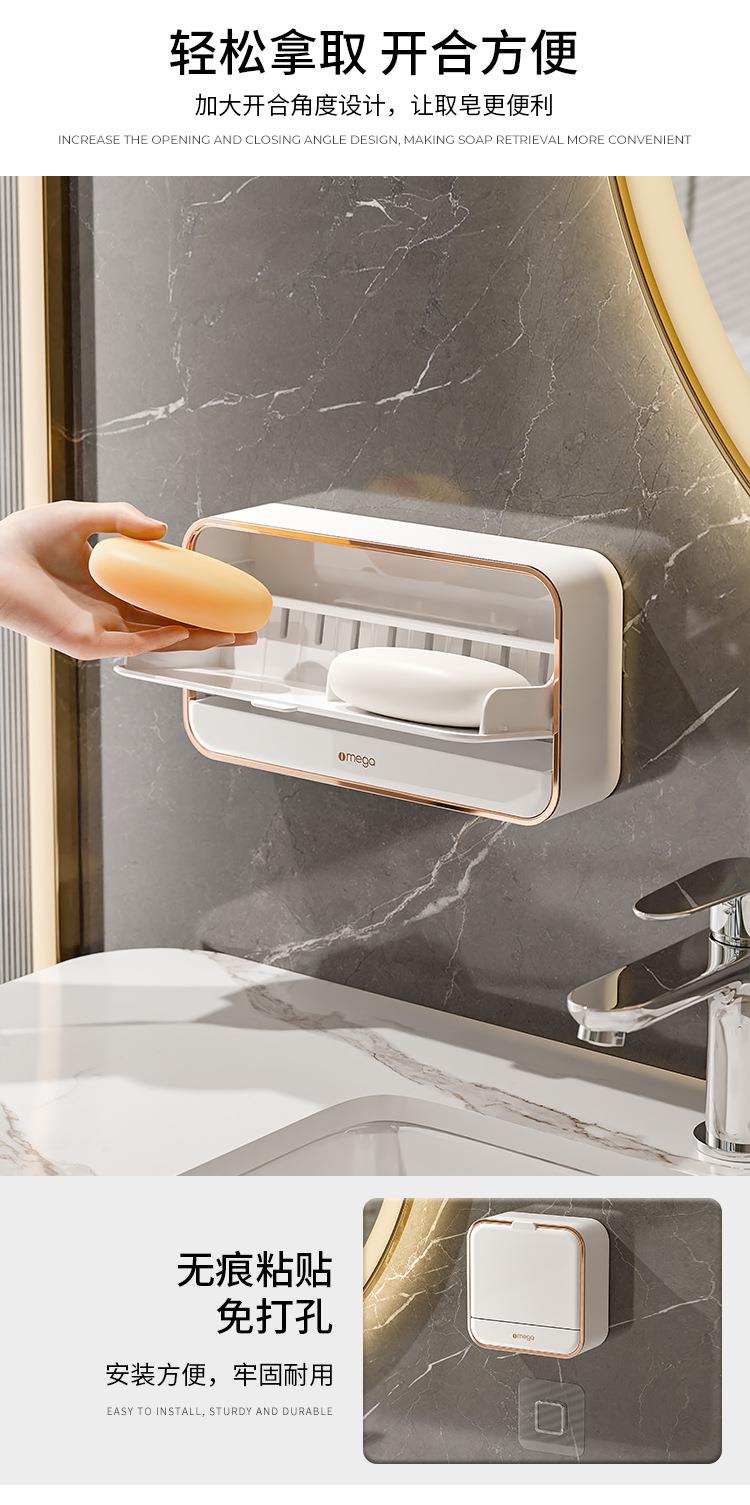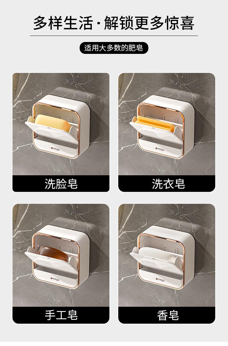家用肥皂盒免打孔壁挂带盖沥水盒轻奢卫生间贴墙香皂盒皂盒肥皂架