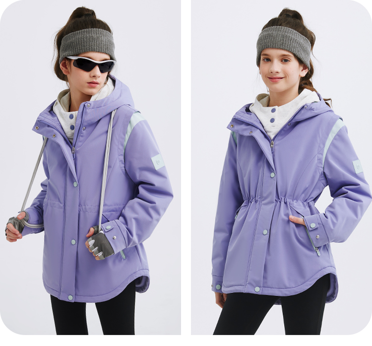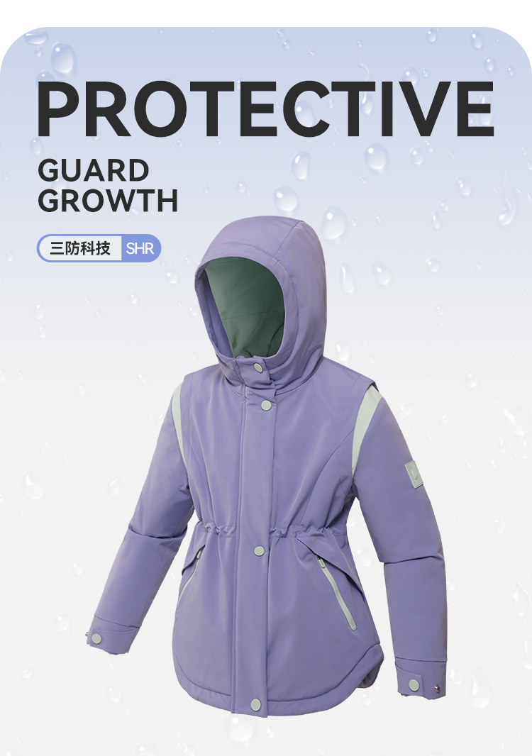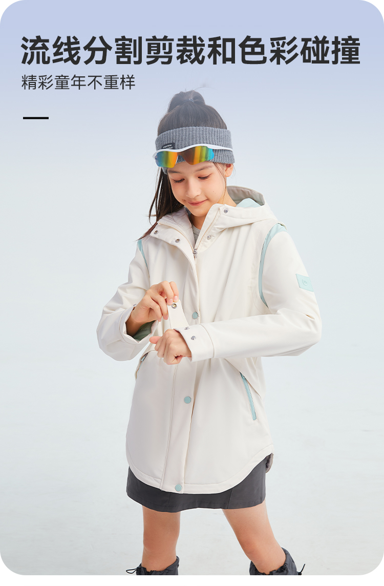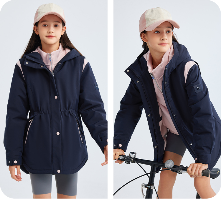 水孩儿童装秋冬新款女童三防外套儿童收腰加绒风衣时尚拼色上衣