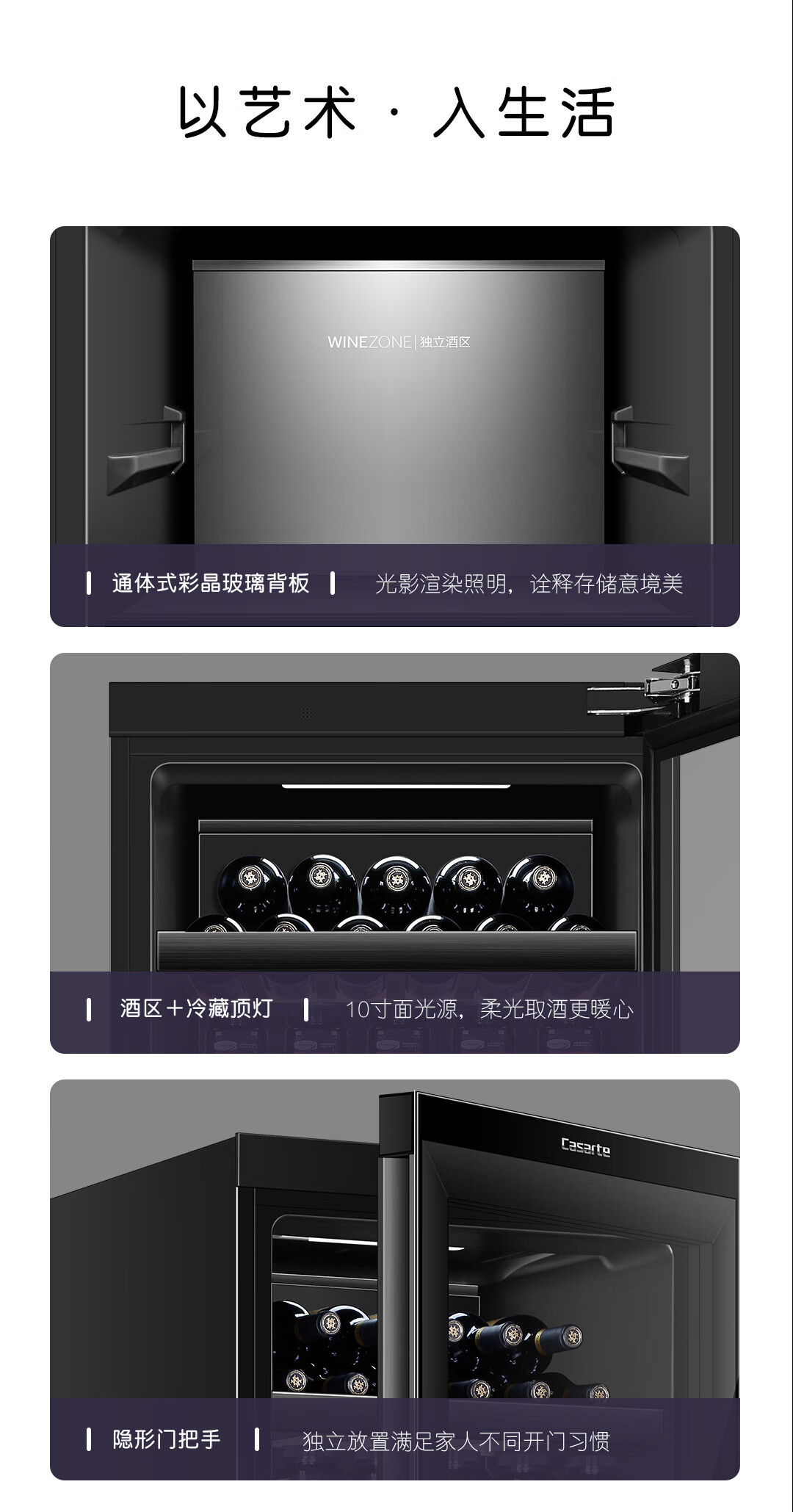 卡萨帝(Casarte)251升三温区原创平嵌零距离嵌入暖藏冰吧 茶叶饮料水果冷藏柜保鲜柜小型LC-251WLCDFM1U1