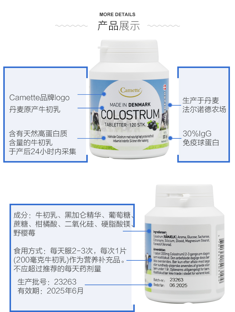 丹麦进口Camette诺德COLOSTRUM24小时牛初乳片 黑加仑味