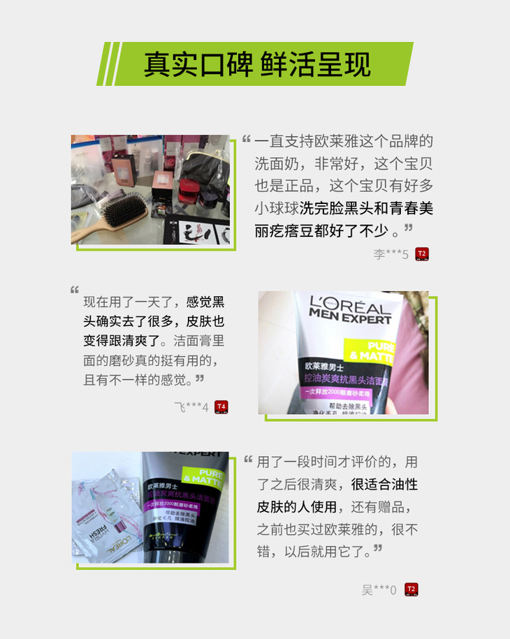 【L'OREAL欧莱雅】男士控油炭爽抗黑头洁面膏 清洁洗面奶祛黑头洁面乳官方正品