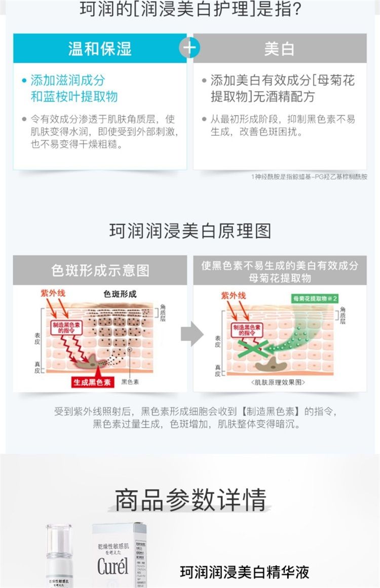 【预售 急单慎拍】日本珂润润浸美白精华液30g淡化细纹抗皱紧致脸部舒缓眼部保湿