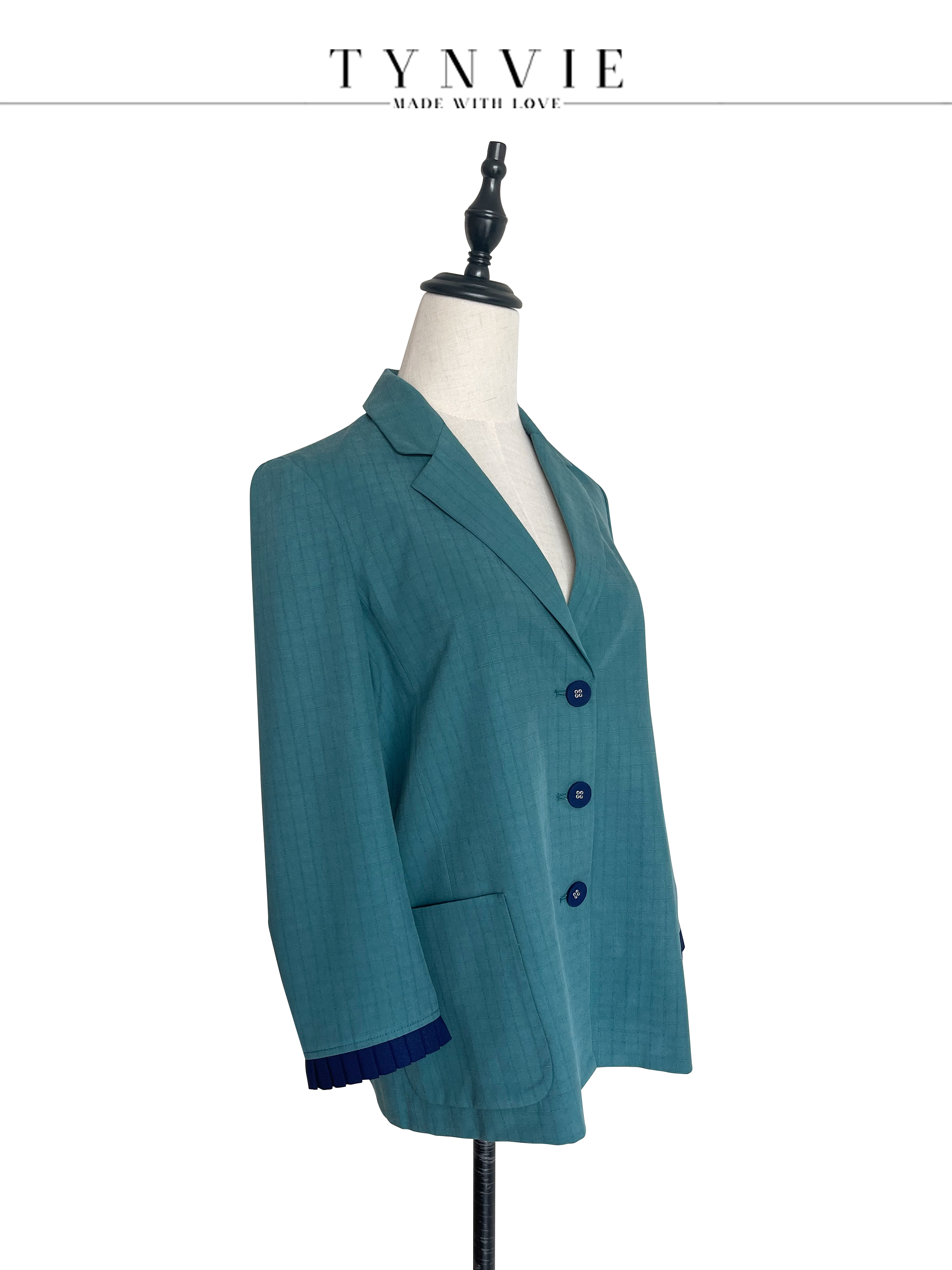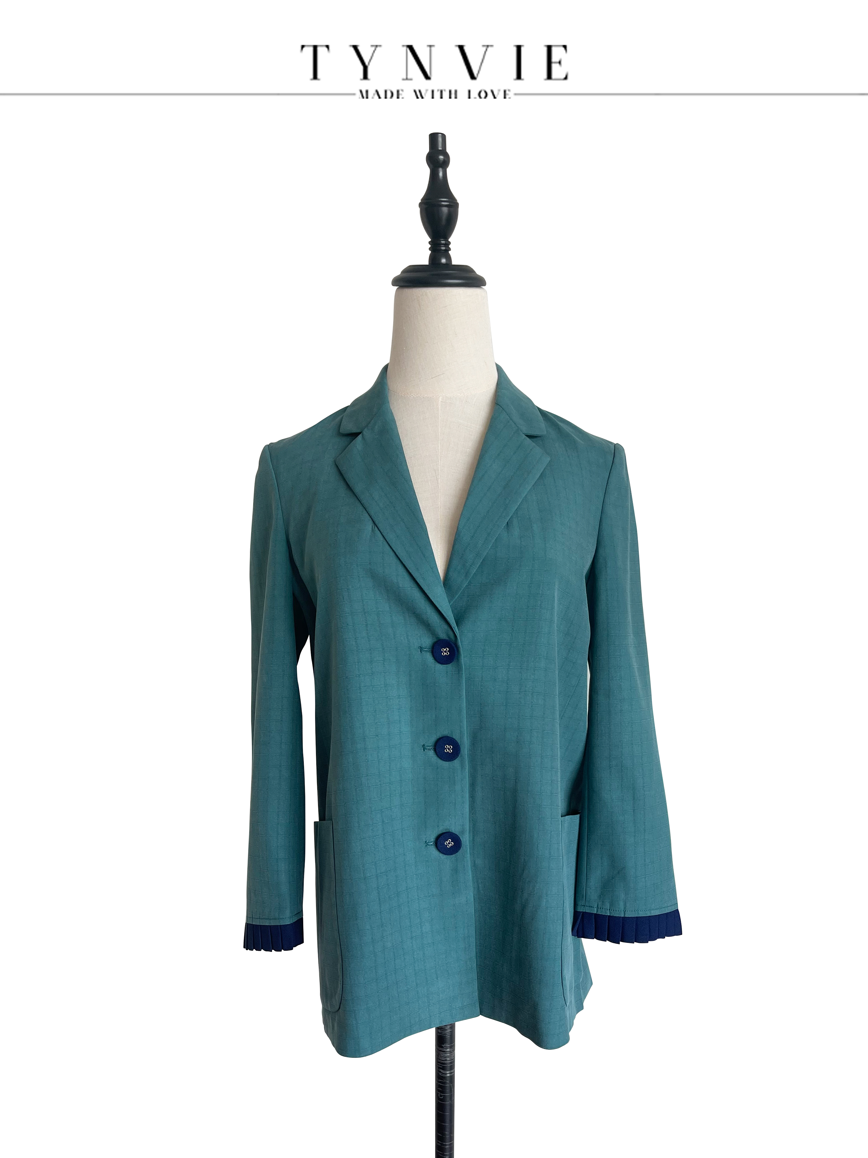 TYNVIE 排褶袖口单排扣西装-绿色