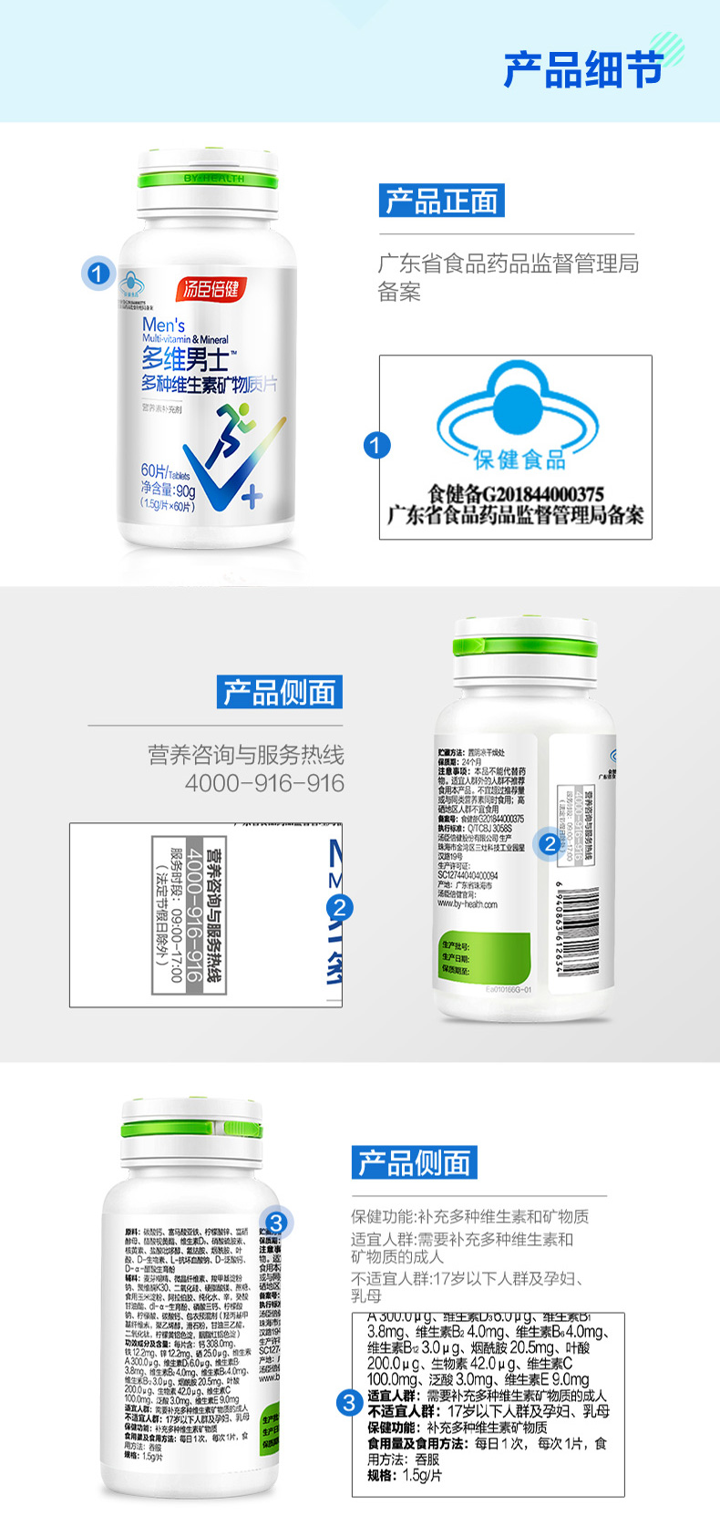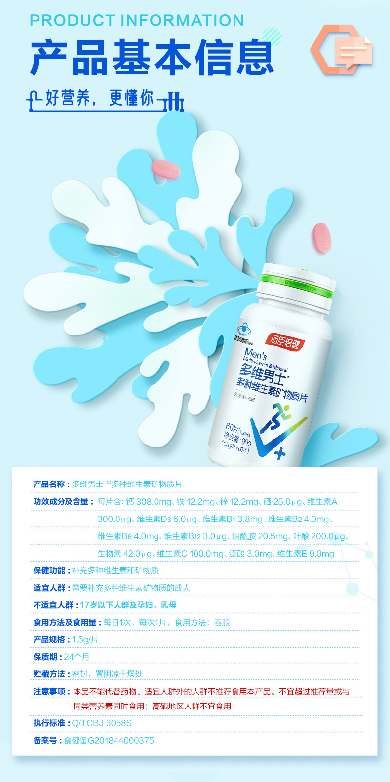 汤臣倍健多维男士多种维生素矿物质片彩盒装(60片)