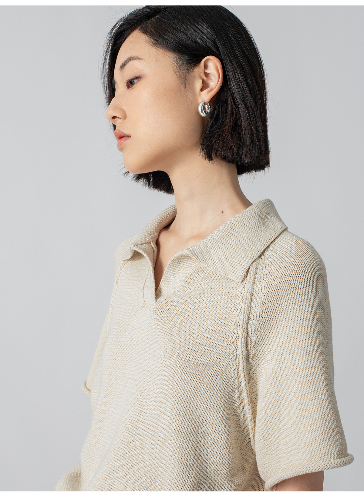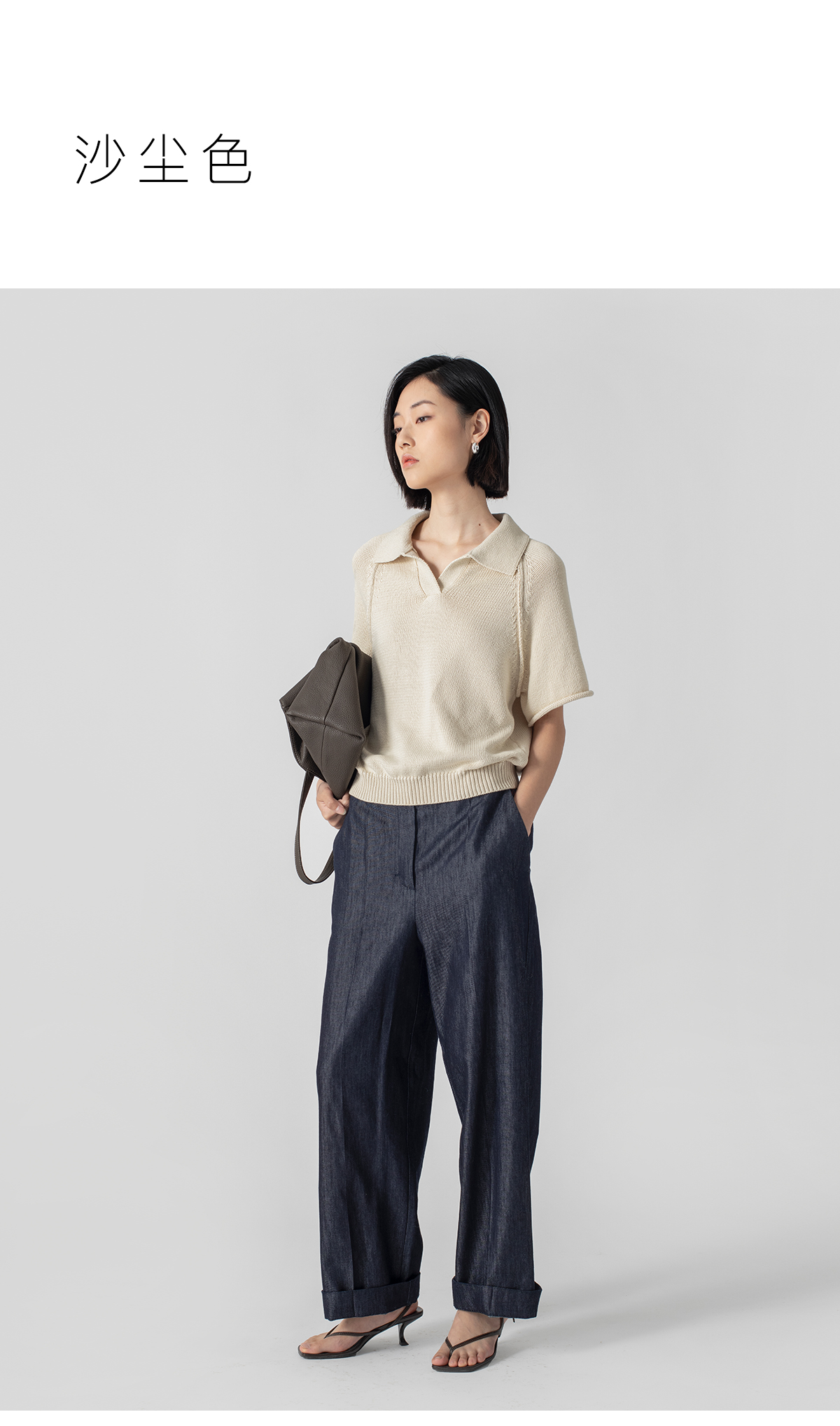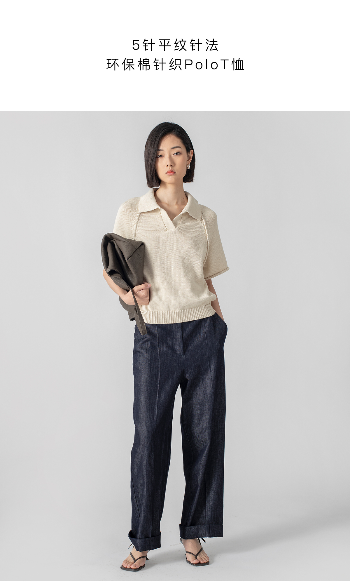 322工房经典再造环保棉针织PoloT恤2023春夏款休闲短袖套头衫B043