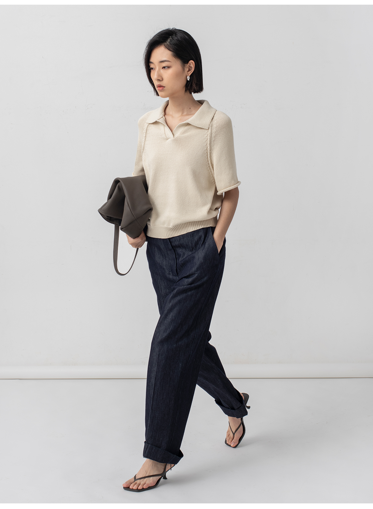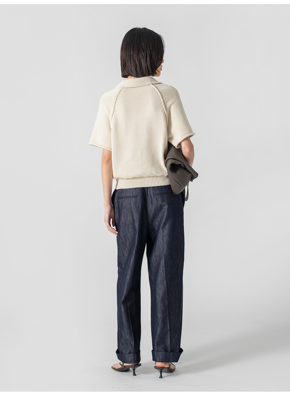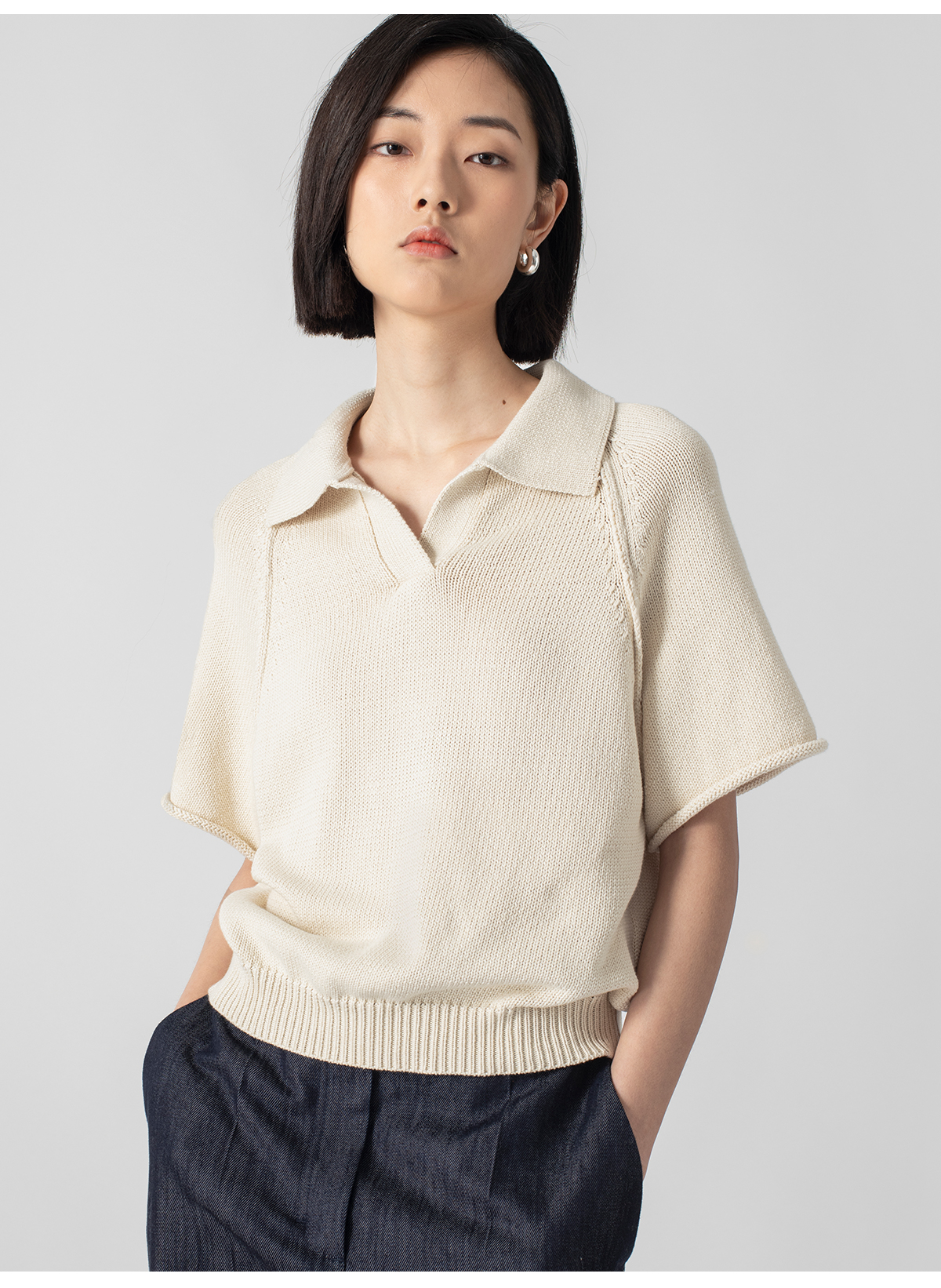 322工房经典再造环保棉针织PoloT恤2023春夏款休闲短袖套头衫B043