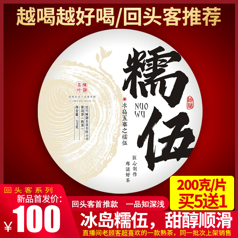 91 普洱茶熟茶饼2020年春茶200克熟茶冰岛五寨之糯伍回头客 香醇厚重