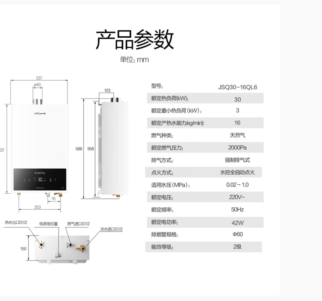 万和燃气热水器 JSQ30-16QL6 恒温机
