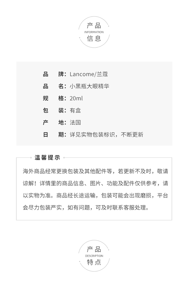 兰蔻 小黑瓶大眼精华 眼部肌底液改善眼袋细纹 20ml LANCÔME/lancome 27年后