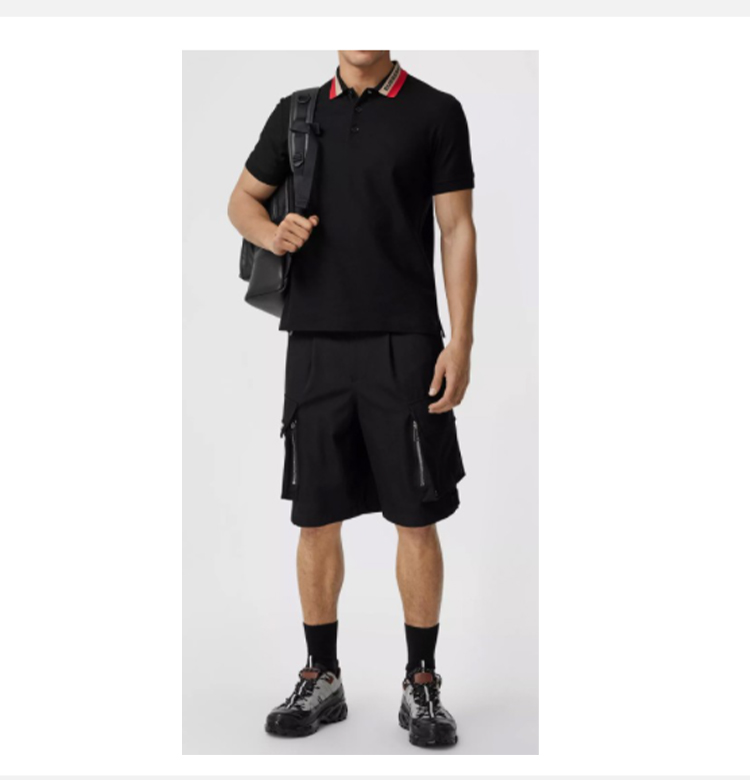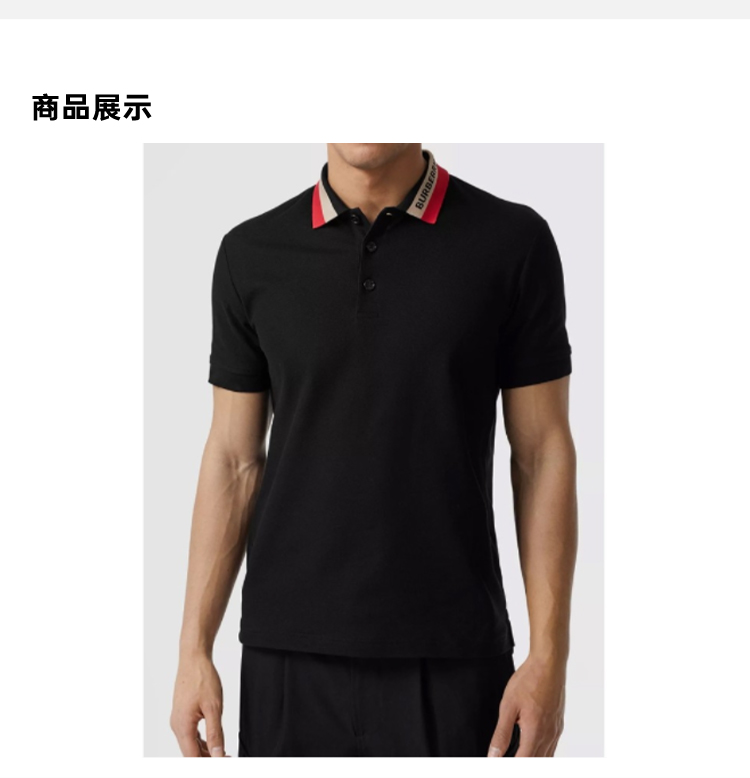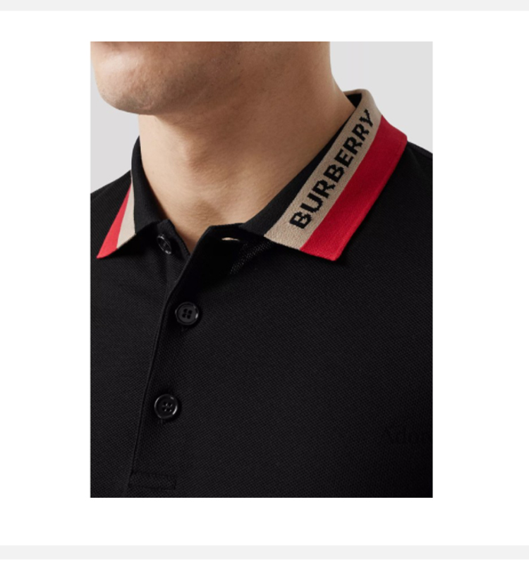【一】BURBERRY 博柏利 徽标装饰珠地网眼布棉质 Polo 衫 男士短袖T恤 黑色 8039265 A1189