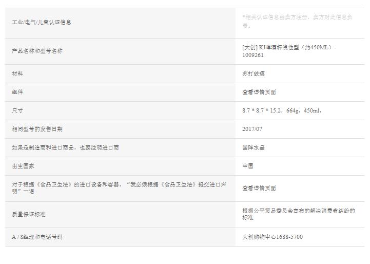 大创酒杯 Daiso Wine glass KJ啤酒杯线性型(约450ML)-1009261JPY带授权招加盟代理