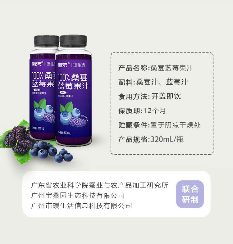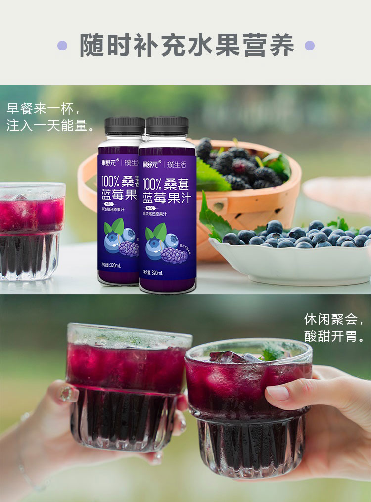 100%桑葚蓝莓果汁 320ml*8瓶/箱