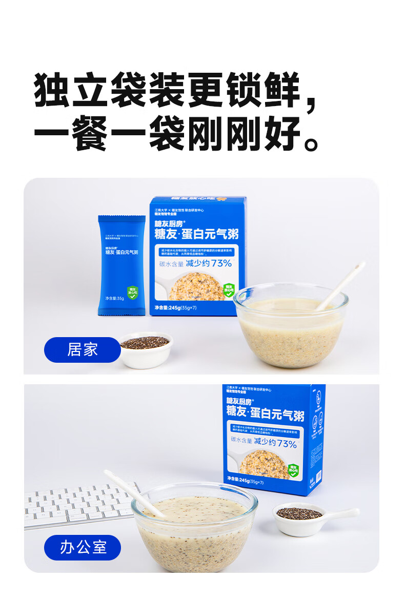【分仓直发包邮】糖友厨房蛋白元气粥245g*2盒